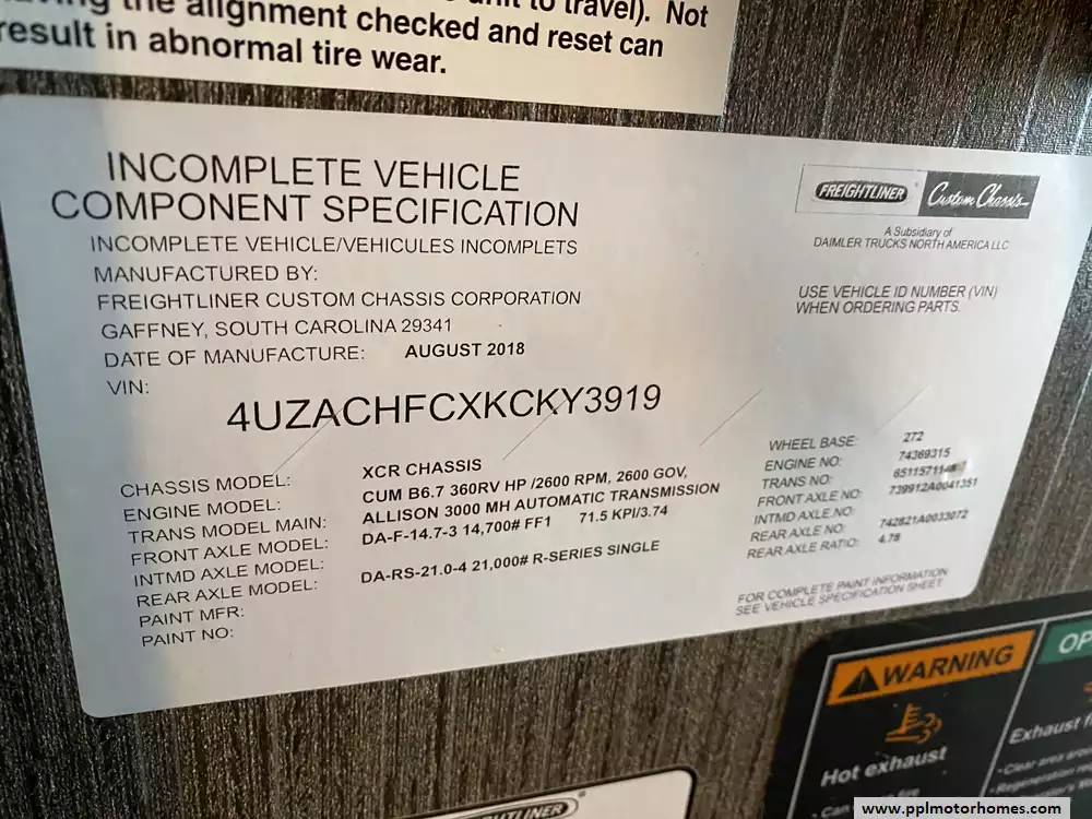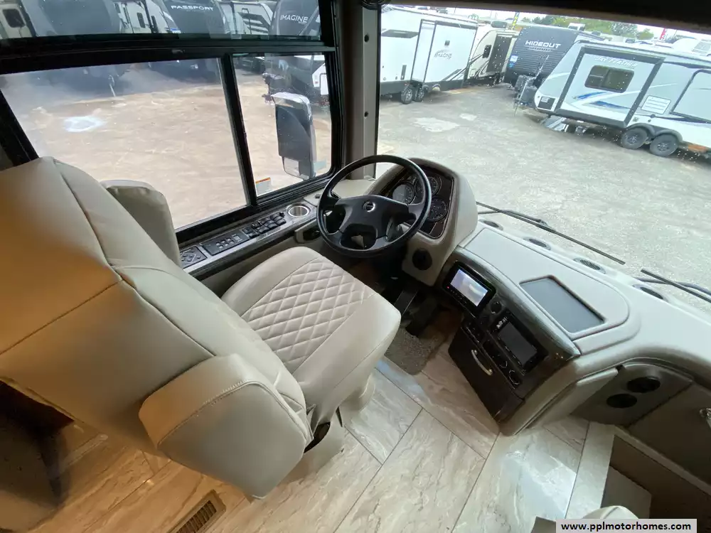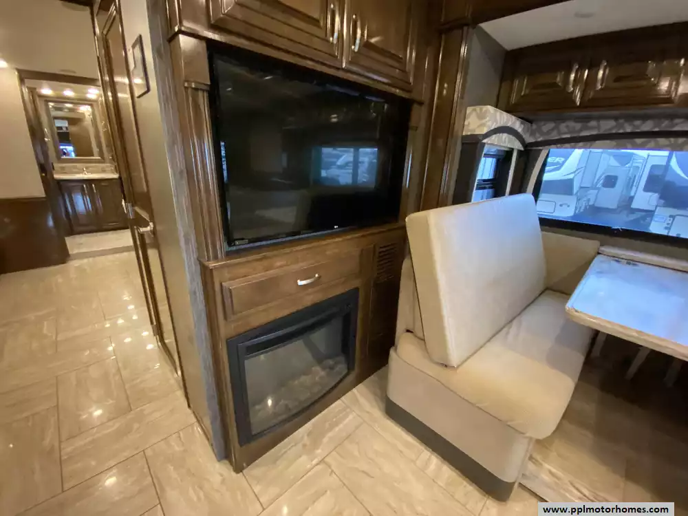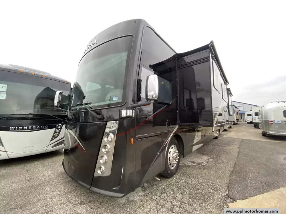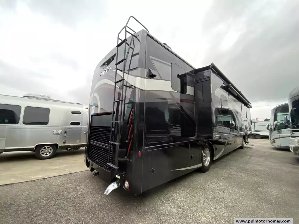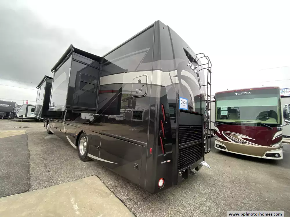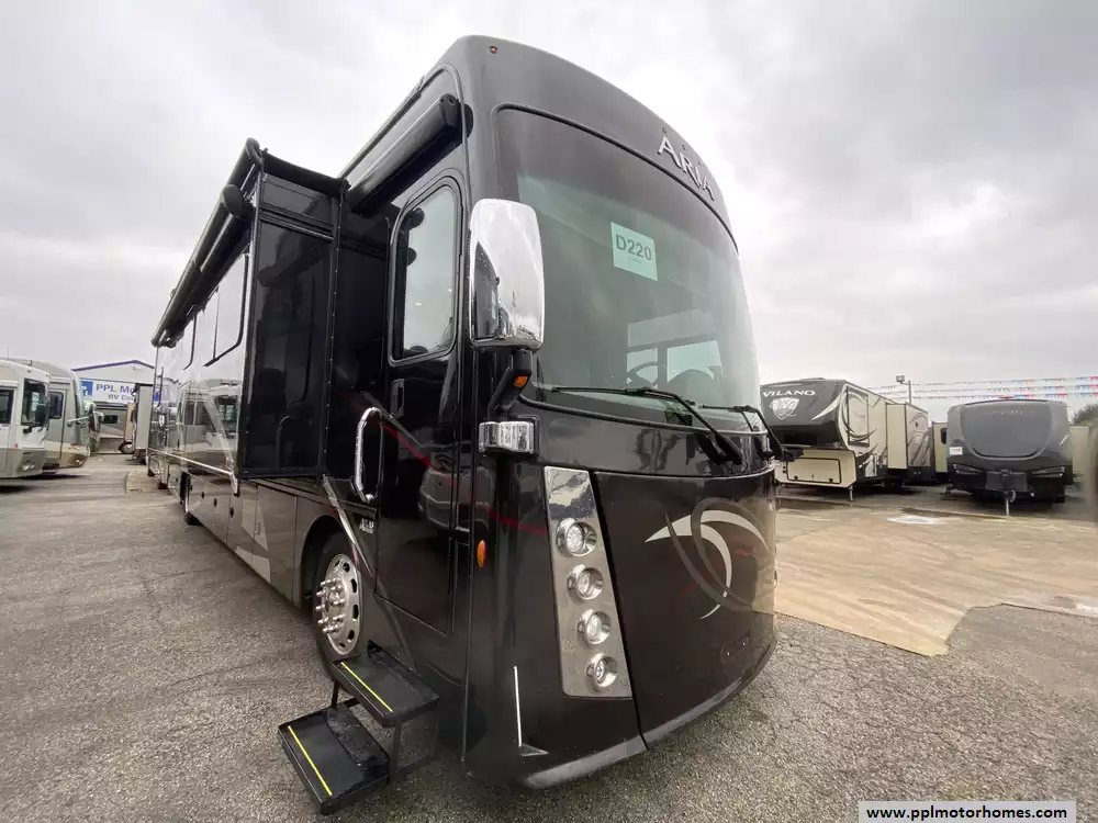 This 2019 Aria 3901 has a 360hp Isb 6.7l Cummins Engine On a Freightliner Chassis, Air Bag Suspension, Exhaust Brake, 3 Slide-outs, Onan Diesel Generator, 1 Non-Ducted And 2 Ducted Air Conditioner, Levelers, Double Door Residential Whirlpool Refrigerator, In-Fridge Ice Maker, Automatic Main Awning And Slide/Door Awnings, Washer/Dryer, Backup Camera, GPS System, Solar Panel, Outside Entertainment System, 3 TVs, Outside Shower, Fireplace, Convection Microwave, 2 Burner Range
