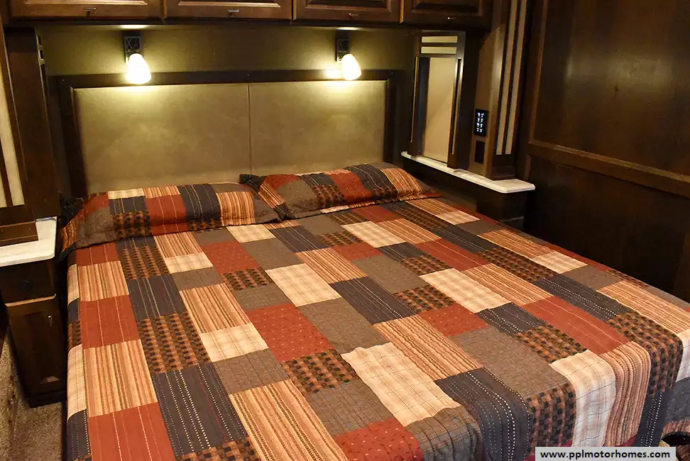 This 2019 Allegro Red 33AA has a 360hp 6.7l Cummins Engine On a Freightliner Chassis, V-Ride Suspension, Exhaust Brake, 4 Slide-outs, Onan Diesel Generator, 2 Ducted Air Conditioners, Levelers, Double Door Residential Ge Refrigerator, In-Fridge Ice Maker, Automatic Main Awning And Window/Slide/Door Awnings, Washer/Dryer, Backup Camera, Solar Panel, Satellite Dish & Receiver, Outside Entertainment System, 2 TVs, Outside Shower, Fireplace, Convection Microwave, 3 Burner Range
