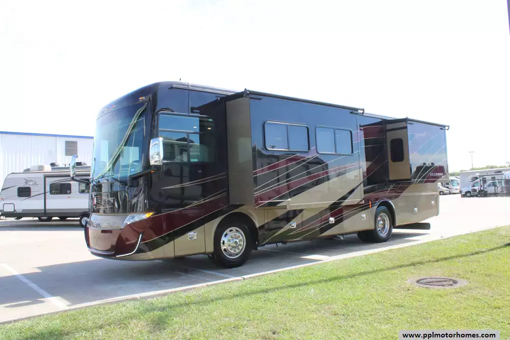 This 2020 Allegro RED 33AA represents the gold standard in luxury diesel pushers, offering Tiffin's renowned craftsmanship in a highly maneuverable 35-foot length. Built on a premium Freightliner chassis with air bag suspension and a powerful 360hp 6.7L ISB Cummins engine, it provides the smooth, quiet ride and towing confidence that diesel owners demand. Driver-friendly features like the integrated GPS system, backup camera, and exhaust brake make navigating mountain passes or tight campsites equally effortless. Designed for all-season comfort, the exterior is constructed with a durable fiberglass body and roof, featuring heated tanks, an Onan diesel generator, and a comprehensive suite of automatic main, slide, and door awnings to expand your living space to the outdoors.