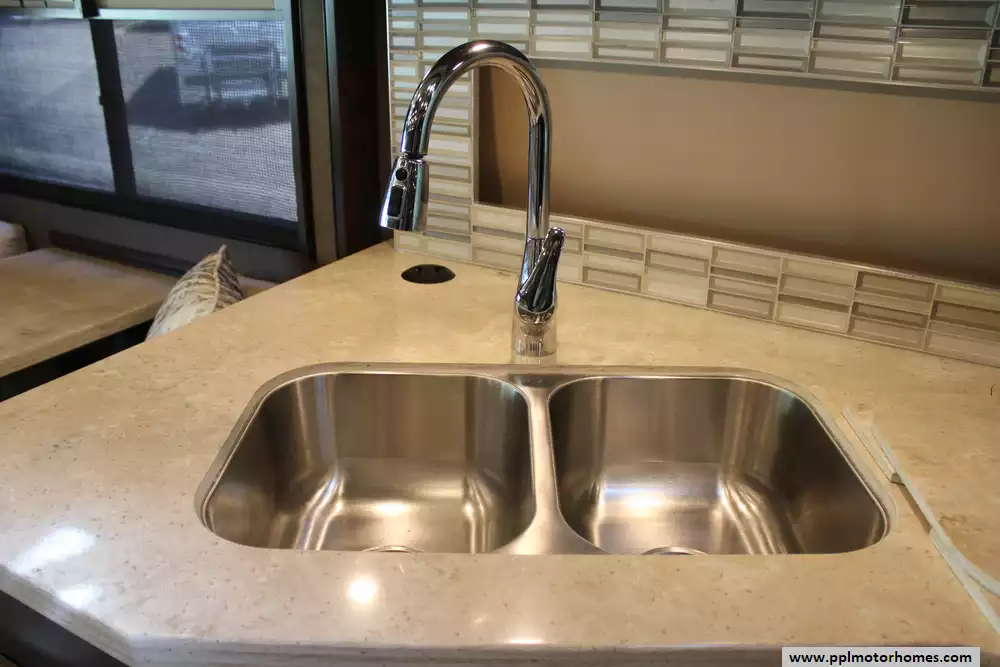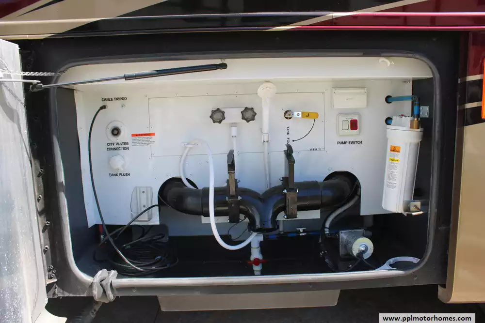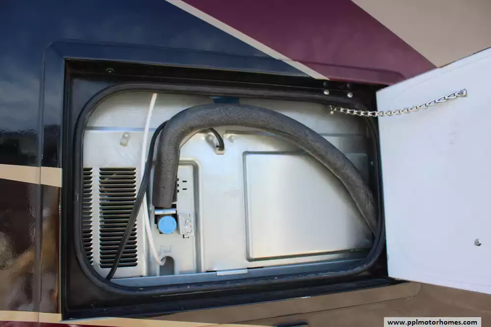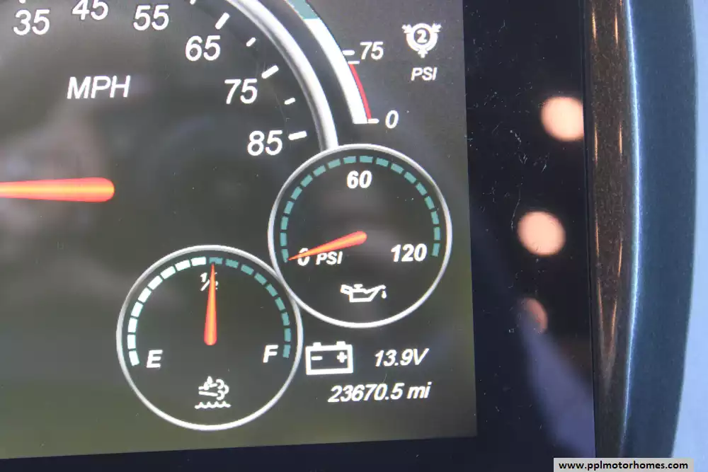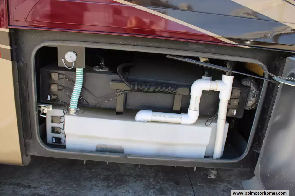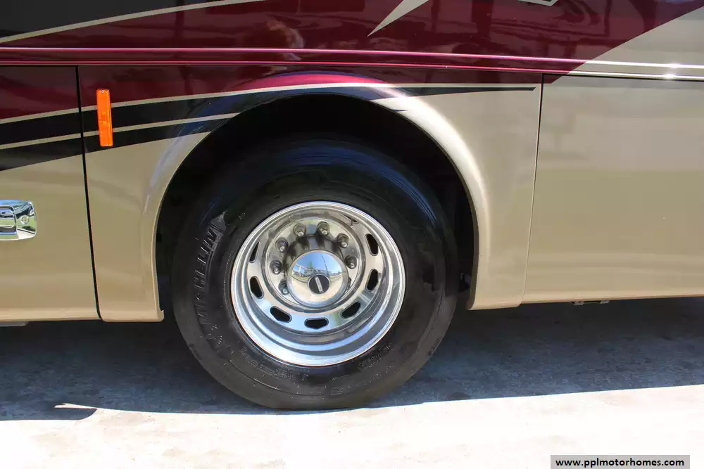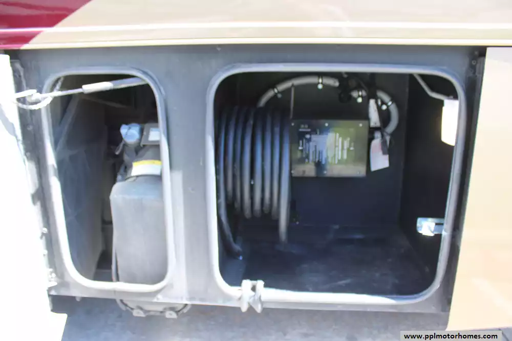 Specs: Length: 35.2 ft., Height: 12.10 ft., Width: 8.42 ft., Interior Width: 8 ft., Fuel Capacity: 100 gal., Total Fresh Water Tank Capacity: 90 gal., Total Grey Tank Capacity: 70 gal., Total Black Water Tank Capacity: 50 gal., Total Propane Tank Capacity: 24 gal.