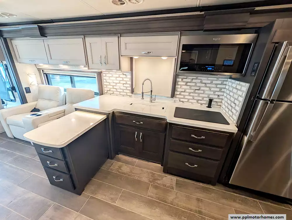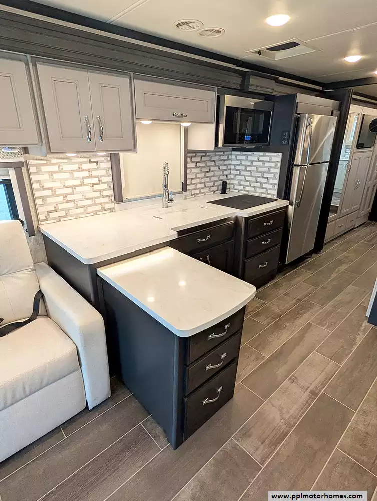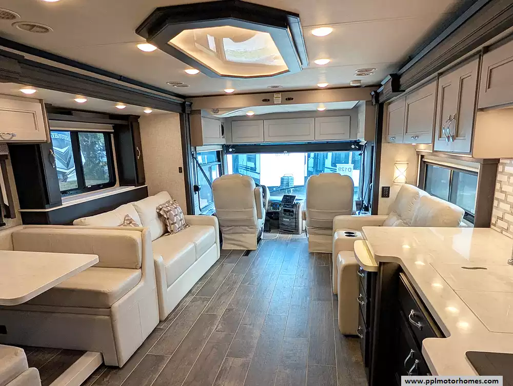 (Floor plan is NOT drawn to scale. Length of vehicle is approximate. Buyer is responsible for verifying actual length. PPL Motor Homes compiled this list of features, specifications, equipment and options as a guide. No representation or warranties, either express or implied, are made as to the accuracy of the information herein. Please verify for yourself all items listed before purchase.)