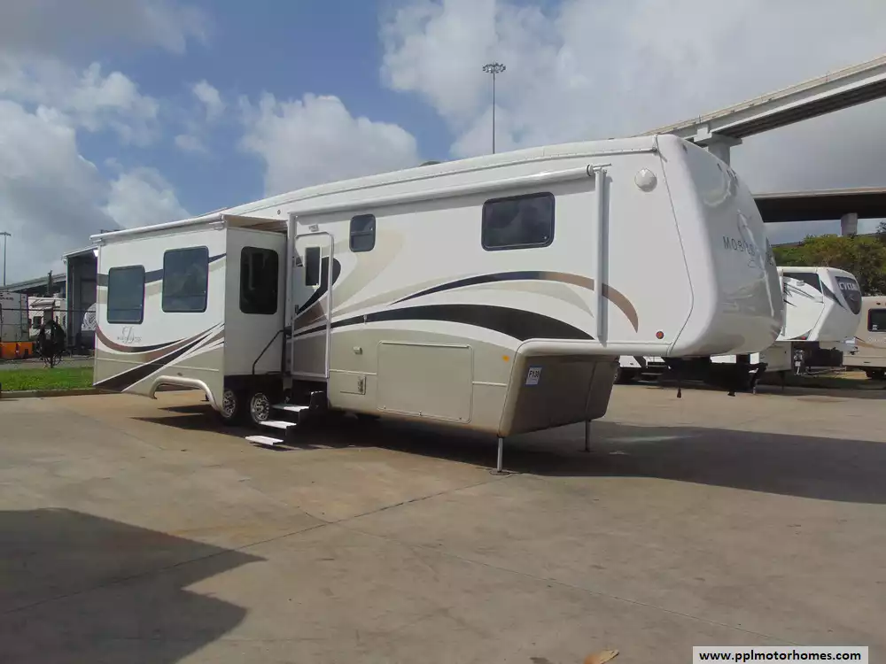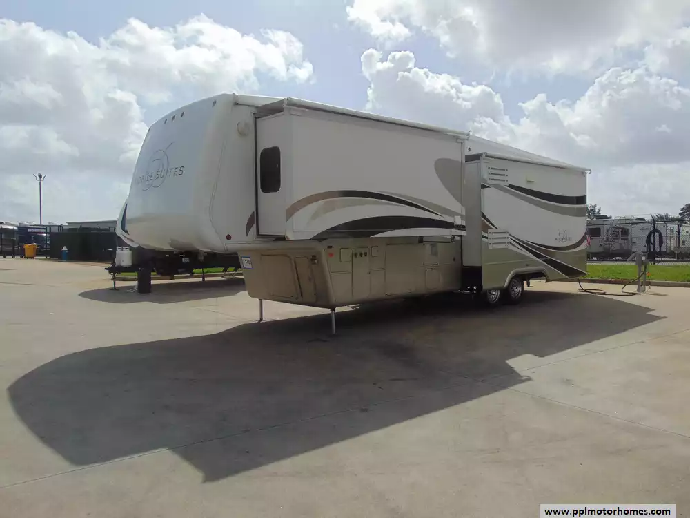 This 2007 DRV Mobile Suites 36SB3 is a high-end fifth-wheel RV designed to provide luxurious living for those seeking a full-time RV lifestyle or extended travel. Features Include...Hydraulic Landing Gear,3 Slide-outs, 2 Ducted Air Conditioners, Side by Side Gas/110v Dometic Refrigerator, In-Fridge Ice Maker, Exterior Freezer, New Automatic Main Awning and Slide Toppers, New Steps and Hand Rail, New Washer/Dryer, 2 New TVs, Outside Shower,Central Vacuum, Microwave,3 Burner Range,and Oven. Upgraded tires to Michelin Rated "J", Slide out Hydraulic Actuators overhauled, All Hydraulic hoses have been replaced. New Brake Disc, New Water presssure Accumulator, New Sofa Sleeper, New Kitchen Pendent lights, New Faucets, This is an excellent choice for those who value luxury,comfort,and durability in their RV.Its well-thought-out design and high-quality construction make it ideal for extended stays and full-time living on the road.