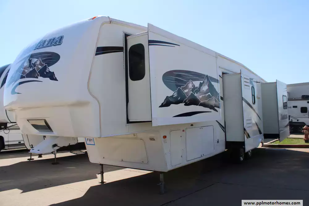 This 2007 Keystone Montana 3400RL Is Looking For New Adventures. Some Highlights Include.... Electric Landing Gear, 4 Slide-Outs, Tinted Windows, 2 Roof-Ducted Air Conditioners, Double Door Gas/110v Dometic Refrigerator, Main Awning, 1-Piece Washer/Dryer Combo, 2 TVs, DVD Player, Surround Sound, Outside Shower, Fireplace, Central Vacuum System, Ceiling Fan, Desk Area, Convection Microwave, 3 Burner Range, Oven, Split Bathroom, Keystone's "Arctic Insulation Package", King Bed, And More! Ask About PPL's Financing Options. Enjoy Camping In This 2007 Montana!
