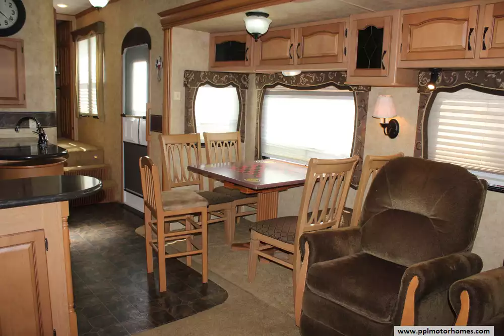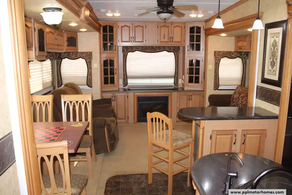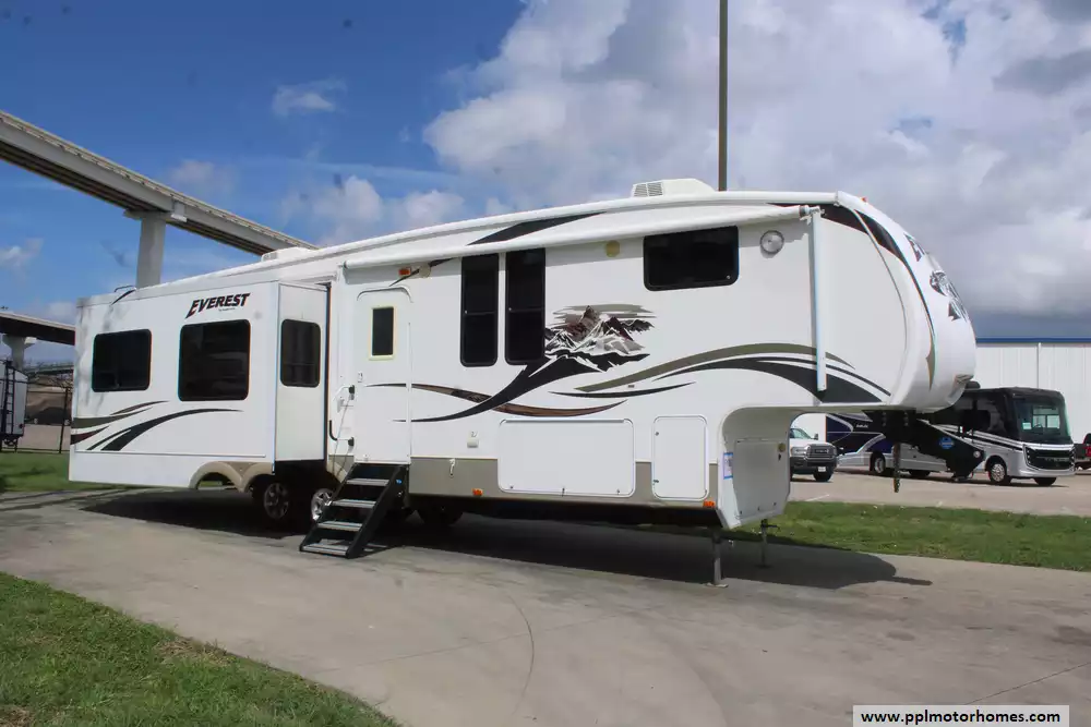 Experience the perfect blend of residential luxury and advanced engineering in this 2009 Everest by Keystone 345S. Known for its industry-leading Easy Tow front fiberglass cap, this 37-foot fifth wheel offers superior aerodynamics and an improved turning radius, making it a favorite for those who value a stable and efficient towing experience. The quadruple slide-out design creates an expansive, open-concept interior featuring high ceilings and a layout that many owners consider the pinnacle of four-season comfort. With a durable rubber roof and a sleek fiberglass exterior, this Everest is built to provide a high-end home-away-from-home that stands up to the elements while maintaining a sophisticated, high-gloss appearance.