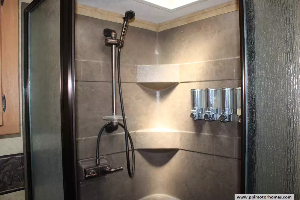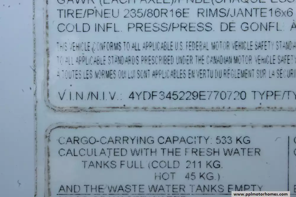 Specs: Length: 37 ft., Width: 8 ft., Height: 12.8 ft., Payload Capacity: 1,763 lbs., Total Fresh Water Tank Capacity: 68 gal., Total Gray Water Tank Capacity: 85 gal., Total Black Water Tank Capacity: 50 gal.