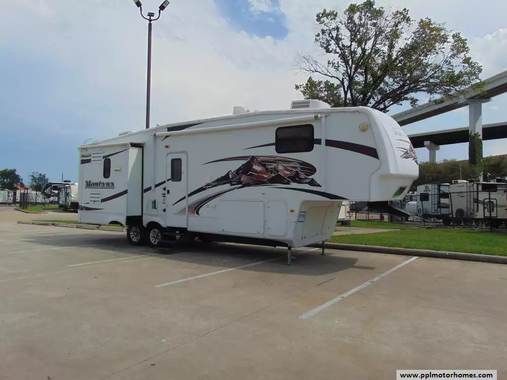 This 2009 Montana 10th Aniversary 2980RL LE is a luxurious fifth wheel designed to provide a comfortable and stylish home on wheels.Comforts Include...Electric Landing Gear,3 Slide-outs, 2 Ducted Air Conditioners, Double Door Gas/110v Dometic Refrigerator, Automatic Main Awning,Bull Dog Auto Leveling, Washer/Dryer, TV, DVD Player, Outside Shower, Fireplace, Central Vacuum, Microwave, 3 Burner Range,and Oven.This is a luxurious and well-designed fifth wheel, perfect for travelers seeking comfort and convenience on the road. Its combination of spacious living areas, high-quality amenities, and durable construction make it an excellent choice for those looking to enjoy the great outdoors without sacrificing the comforts of home.