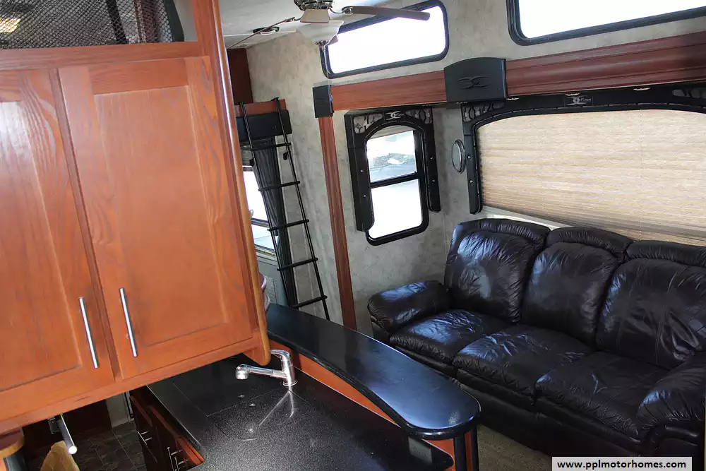 Built for strength and stability, the Fuzion 398 tows confidently behind a properly equipped heavy-duty pickup or flatbed truck with a fifth-wheel hitch setup. Its robust frame, balanced weight distribution, and upgraded suspension ensure a smooth, steady ride-even when the garage is fully loaded. Whether you're heading to the dunes, the mountains, or the lake, this toy hauler delivers the perfect combination of capability and class. Bold, beautiful, and built for adventure-the Fuzion 398 turns every trip into a first-class escape.