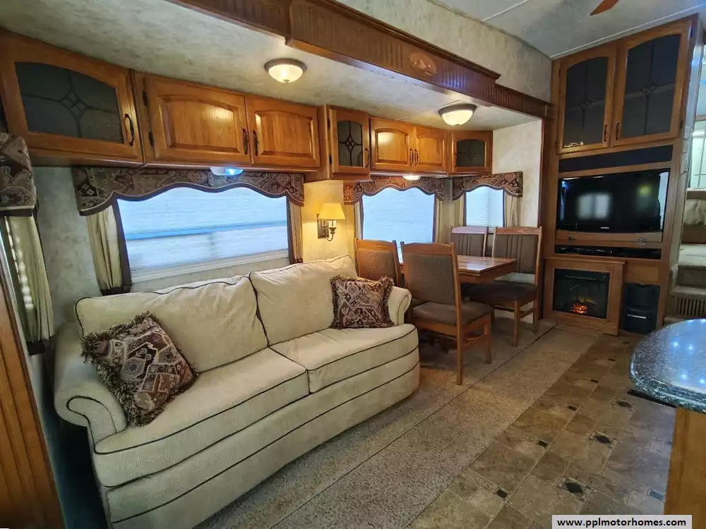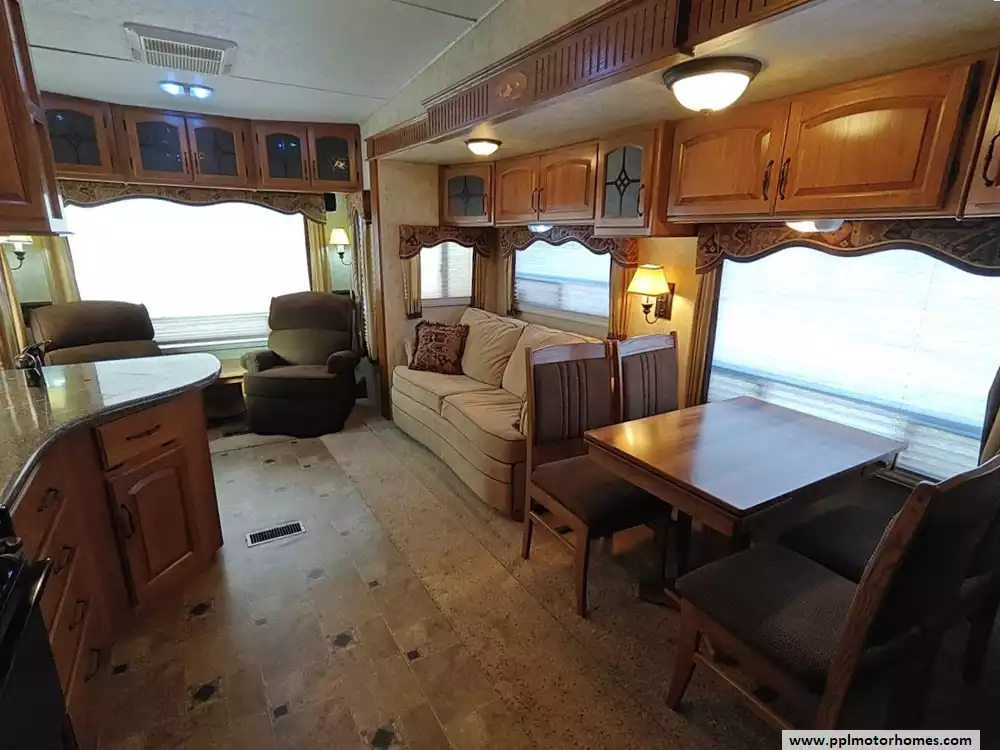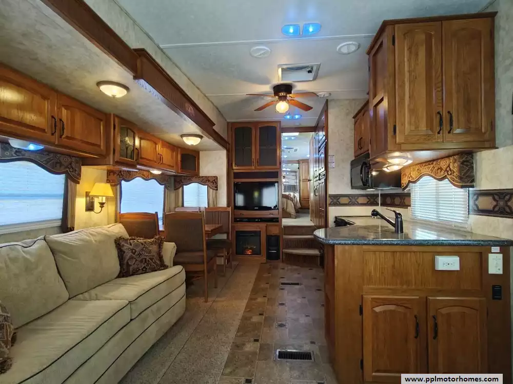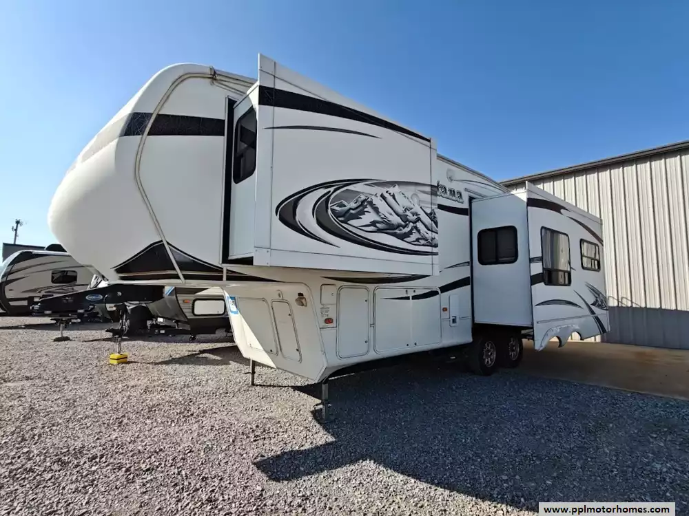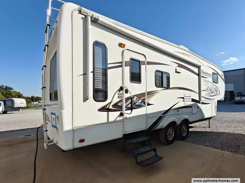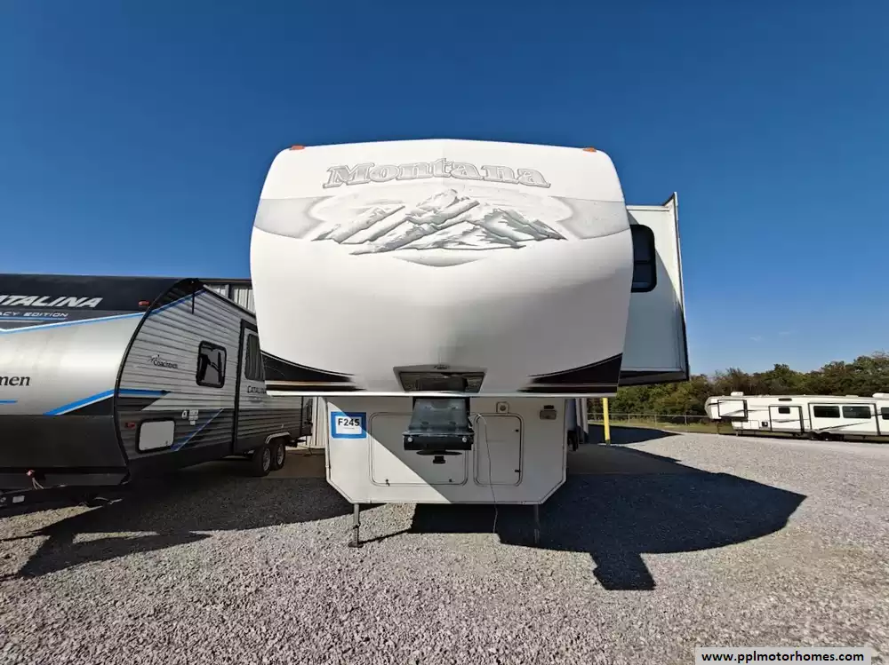 This 2010 Montana by Keystone 2955RL is a fifth-wheel recreational vehicle known for its spacious rear-lounge floor plan and boasts a wide-body bedroom suite that creates a feeling of openness. Its king-sized bed, cedar-lined closets, and high ceilings elevate your living experience. Equipped with Corian countertops, full-sized deep sinks, and many drawers and cabinets for optimal organization. Standard 3 burner range and over, convection microwave and double door Gas/110v Norcold Refrigerator. It also features an electric fireplace, 2 TVS, DVD player,2 Air Conditioning Units,an On Demand Water Heater, a Central Vacuum, Washer/Dryer Connections, Electric Landing Gear, Electric over Hydrolic Braking System, Tire Pressure Monitor, RV Remote Control, Dish Antenna, 2 Slide-outs, Automatic Main Awning, Outside Shower and prepped for a Generator.
