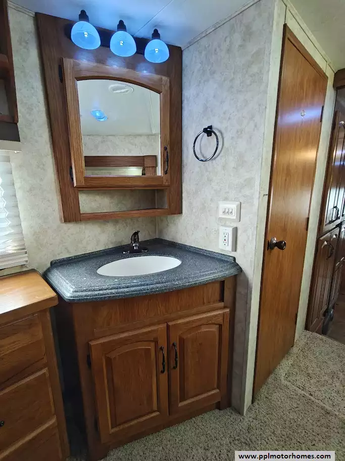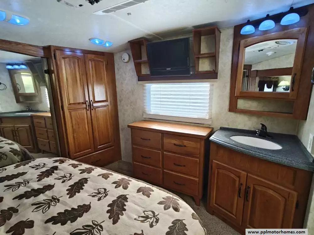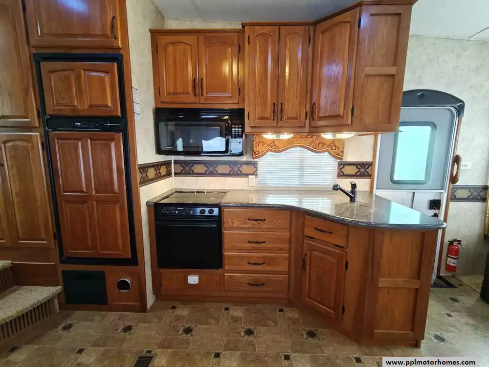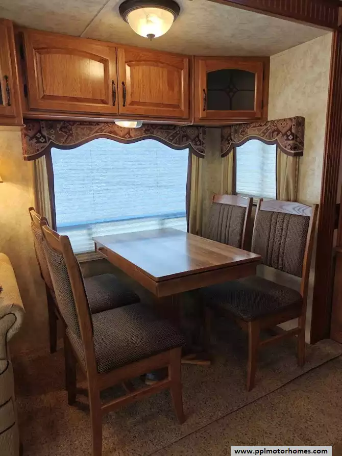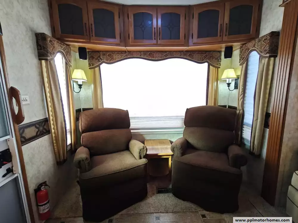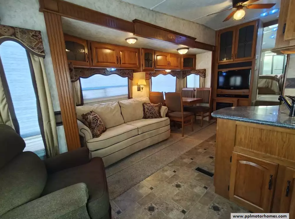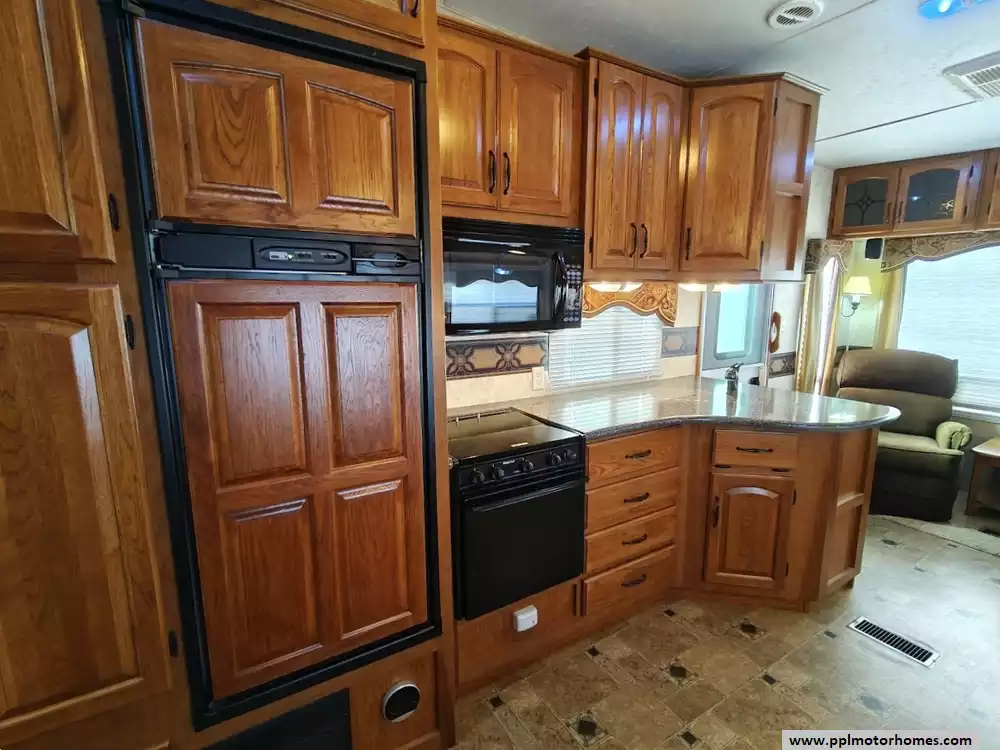 This 2010 Montana by Keystone 2955RL is a fifth-wheel recreational vehicle known for its spacious rear-lounge floor plan and boasts a wide-body bedroom suite that creates a feeling of openness. Its king-sized bed, cedar-lined closets, and high ceilings elevate your living experience. Equipped with Corian countertops, full-sized deep sinks, and many drawers and cabinets for optimal organization. Standard 3 burner range and over, convection microwave and double door Gas/110v Norcold Refrigerator. It also features an electric fireplace, 2 TVS, DVD player,2 Air Conditioning Units,an On Demand Water Heater, a Central Vacuum, Washer/Dryer Connections, Electric Landing Gear, Electric over Hydrolic Braking System, Tire Pressure Monitor, RV Remote Control, Dish Antenna, 2 Slide-outs, Automatic Main Awning, Outside Shower and prepped for a Generator.