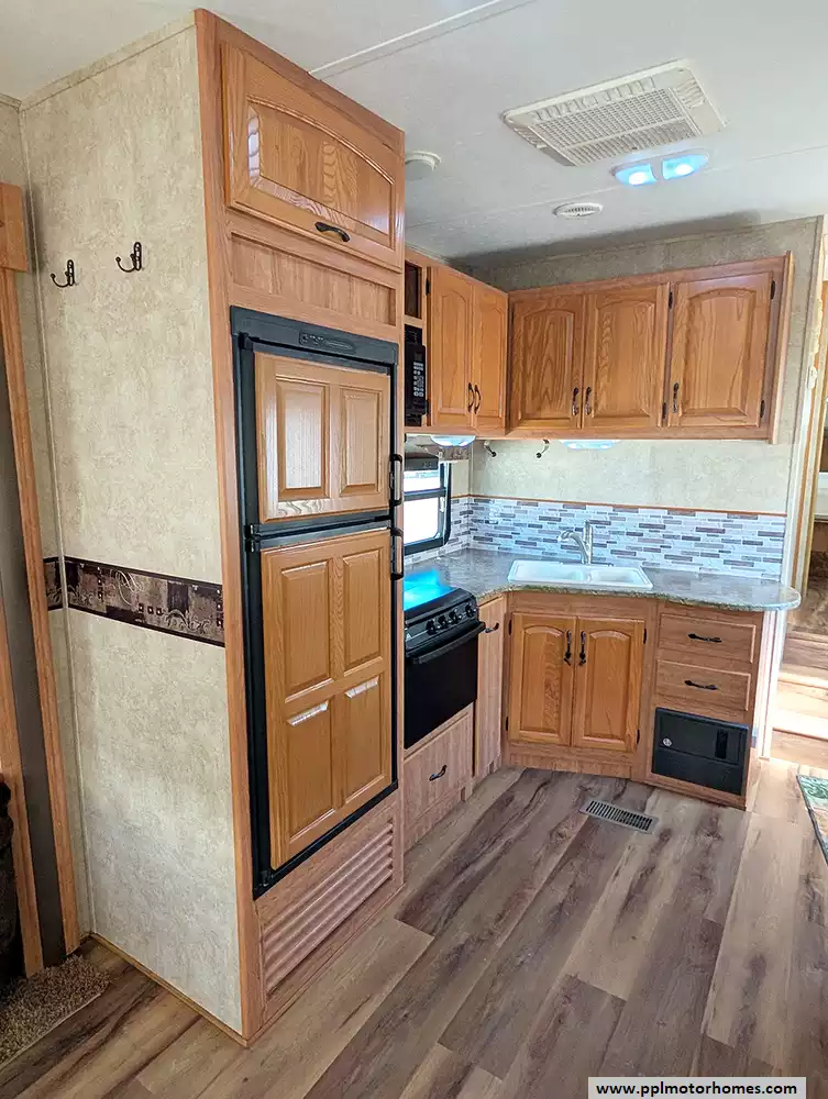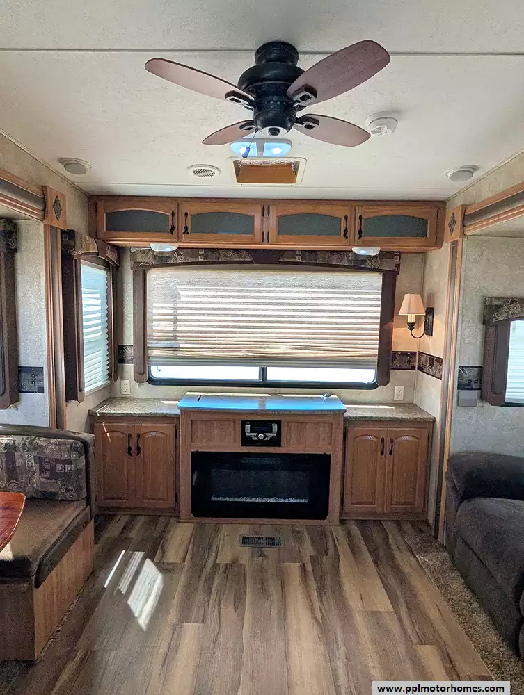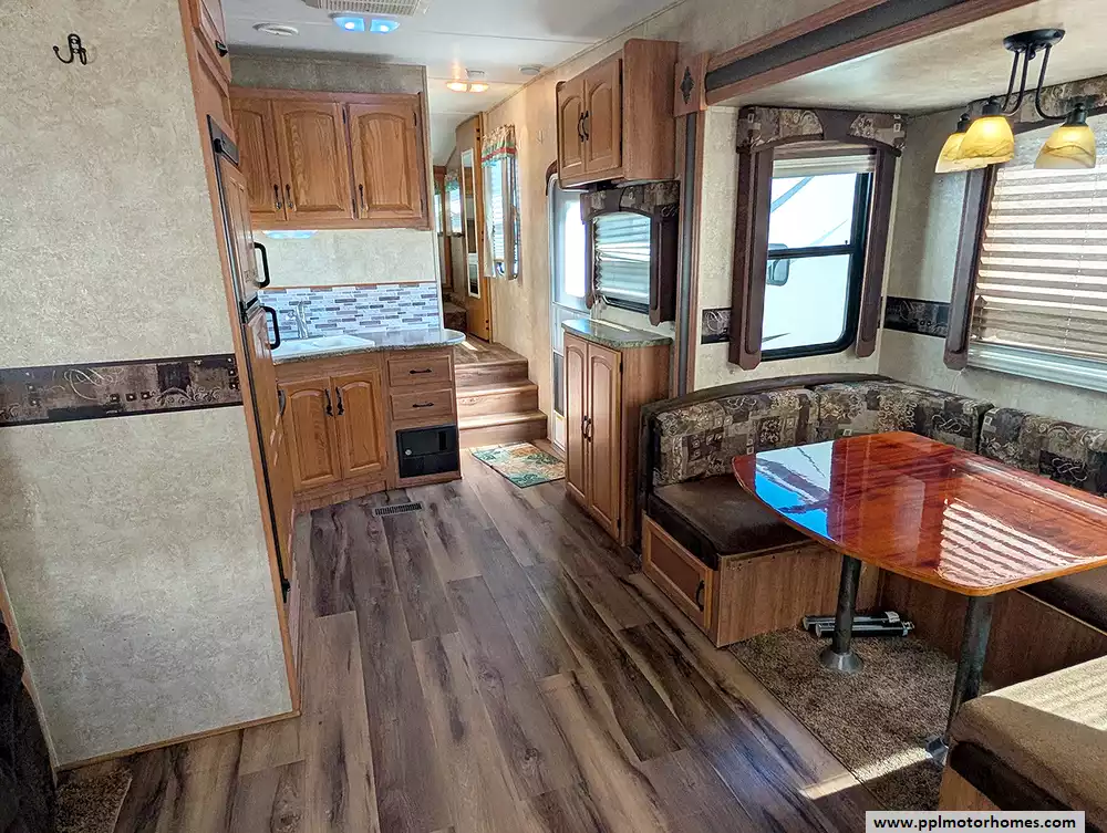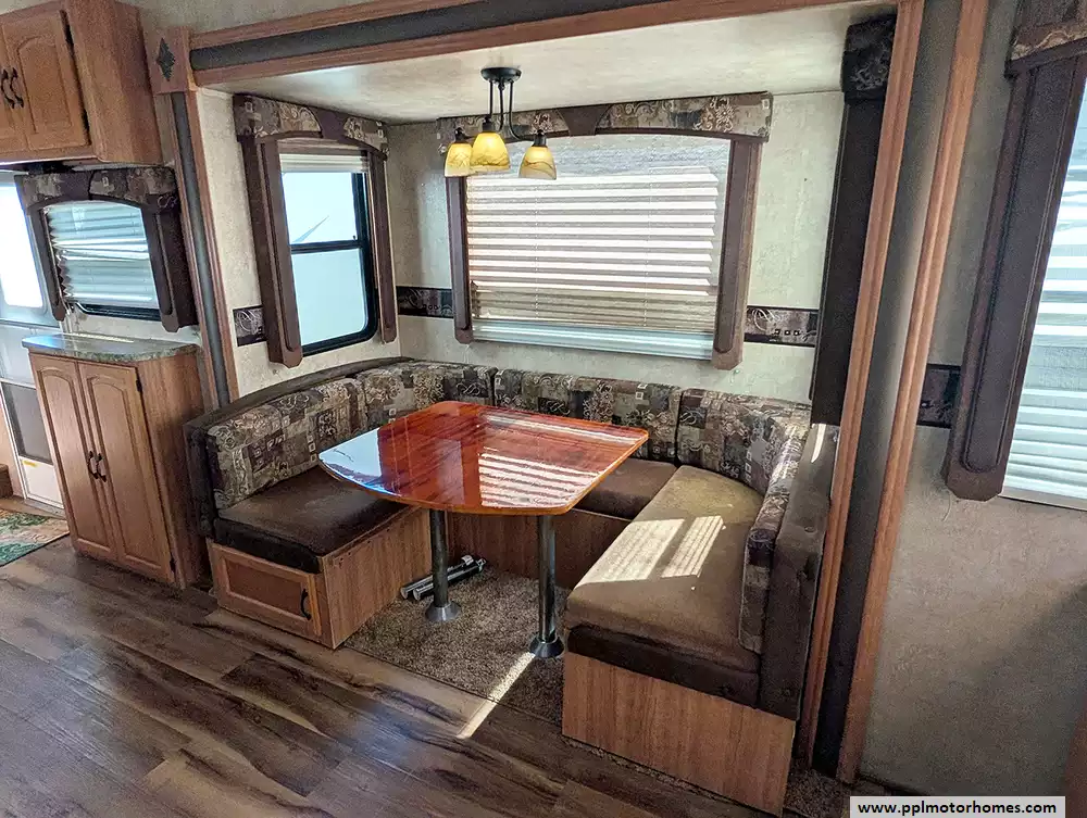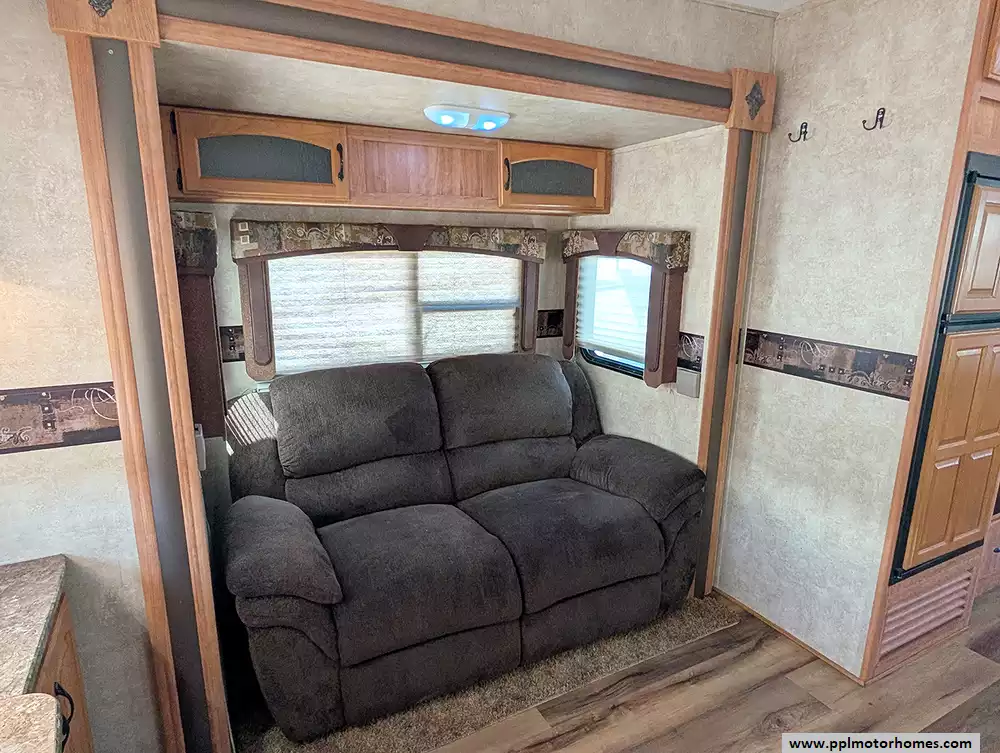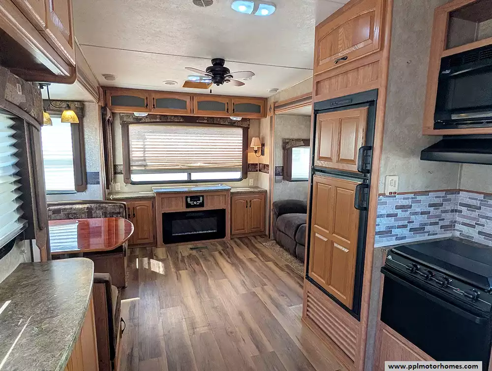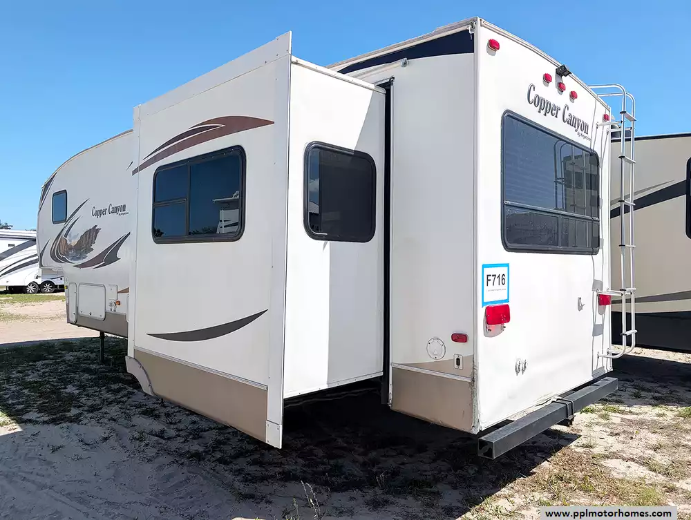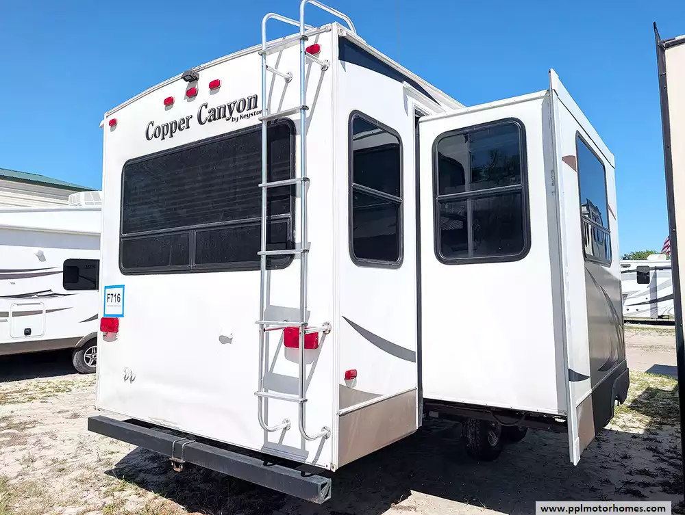 The interior is thoughtfully appointed for long-term comfort, featuring a ducted air conditioner and a fully equipped kitchen with a microwave, three-burner range, oven, and a Dometic double door gas/110v refrigerator. Entertainment is effortless with the included satellite receiver and integrated outside speakers that pair perfectly with the automatic main awning for relaxing evenings outdoors. Whether you are utilizing the outside shower after a day of adventure or cooking a full meal in the spacious galley, this Copper Canyon delivers the reliable reputation and high-end amenities Keystone is known for. It is a well-rounded fifth wheel that remains a top choice for travelers seeking a high-quality, feature-rich home on the road.