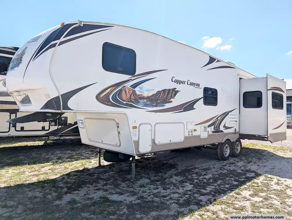 Experience the perfect balance of comfort and towability with this 2010 Keystone Sprinter Copper Canyon 273FWRET. As part of a line famous for introducing the wide-body design to the fifth-wheel market, this 31-foot coach offers an exceptionally spacious interior without the heavy tow weight of larger models. The fiberglass exterior and rubber roof provide a durable, streamlined profile, while the two power slide-outs significantly expand your living area to create an inviting, residential feel. Designed for those who value both convenience and performance, this Sprinter features electric landing gear for easy setup and heated tanks that extend your camping season well into the cooler months.