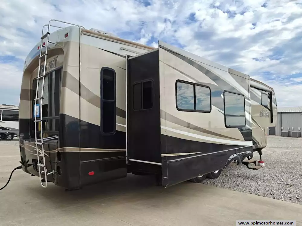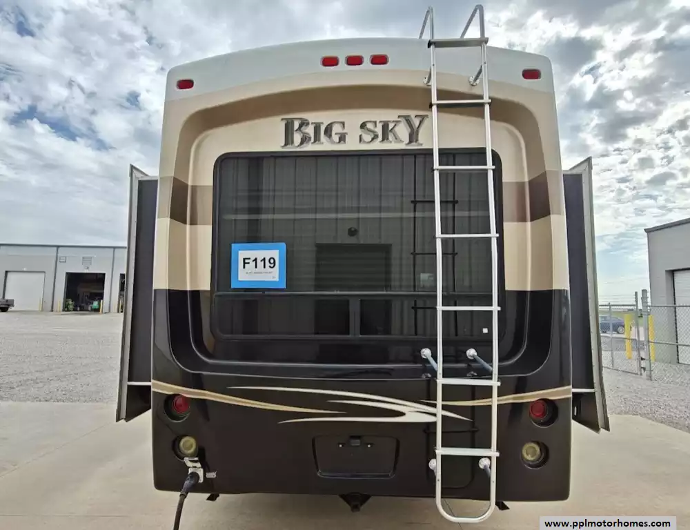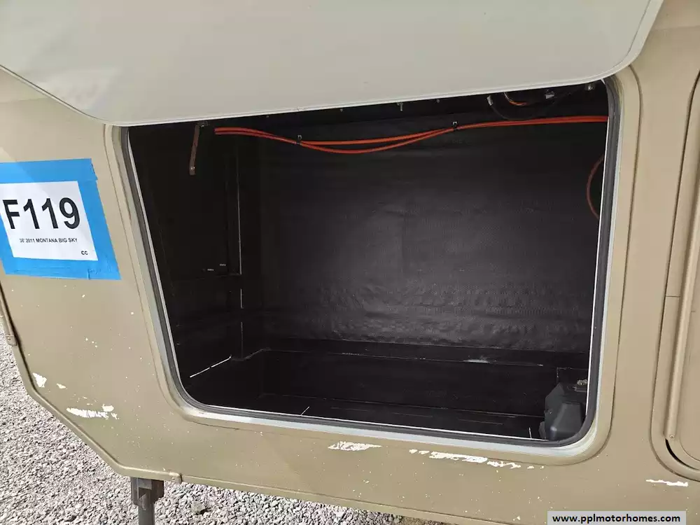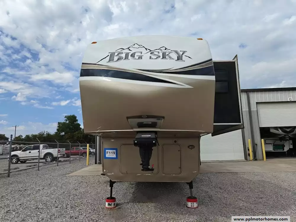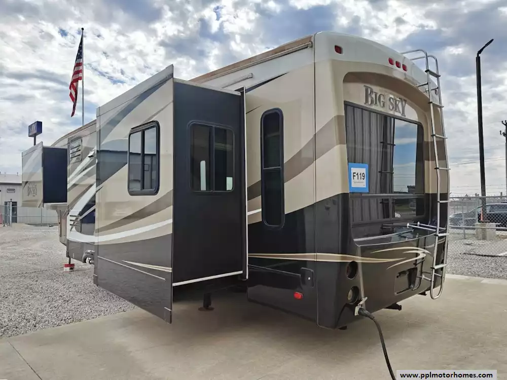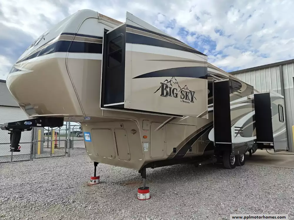 This 2011 Montana Big Sky by Keystone 3400RL sleeps up to 2 people, has a Hydraulic Landing Gear, 4 Slide-outs, 2 Ducted Air Conditioners, 4 Door 110v Norcold Refrigerator, Automatic Main Awning, Washer/Dryer Connections, Satellite Dish & Receiver, 2 TVs, Outside Shower, Fireplace, Microwave, 3 Burner Range, Oven