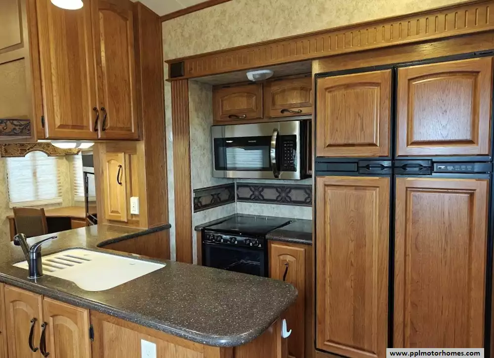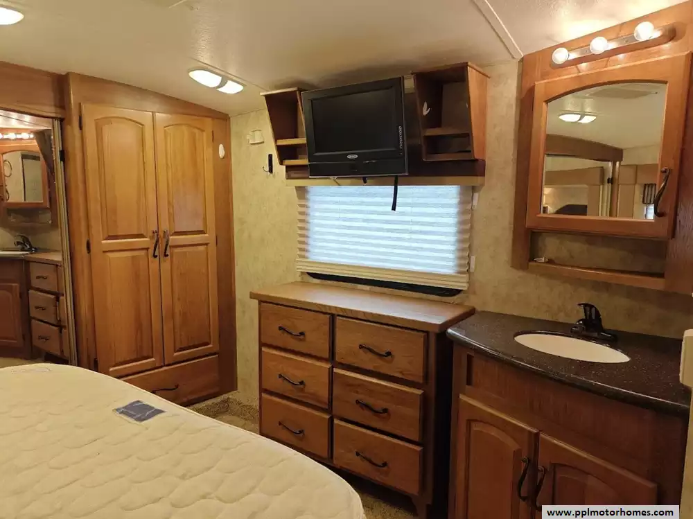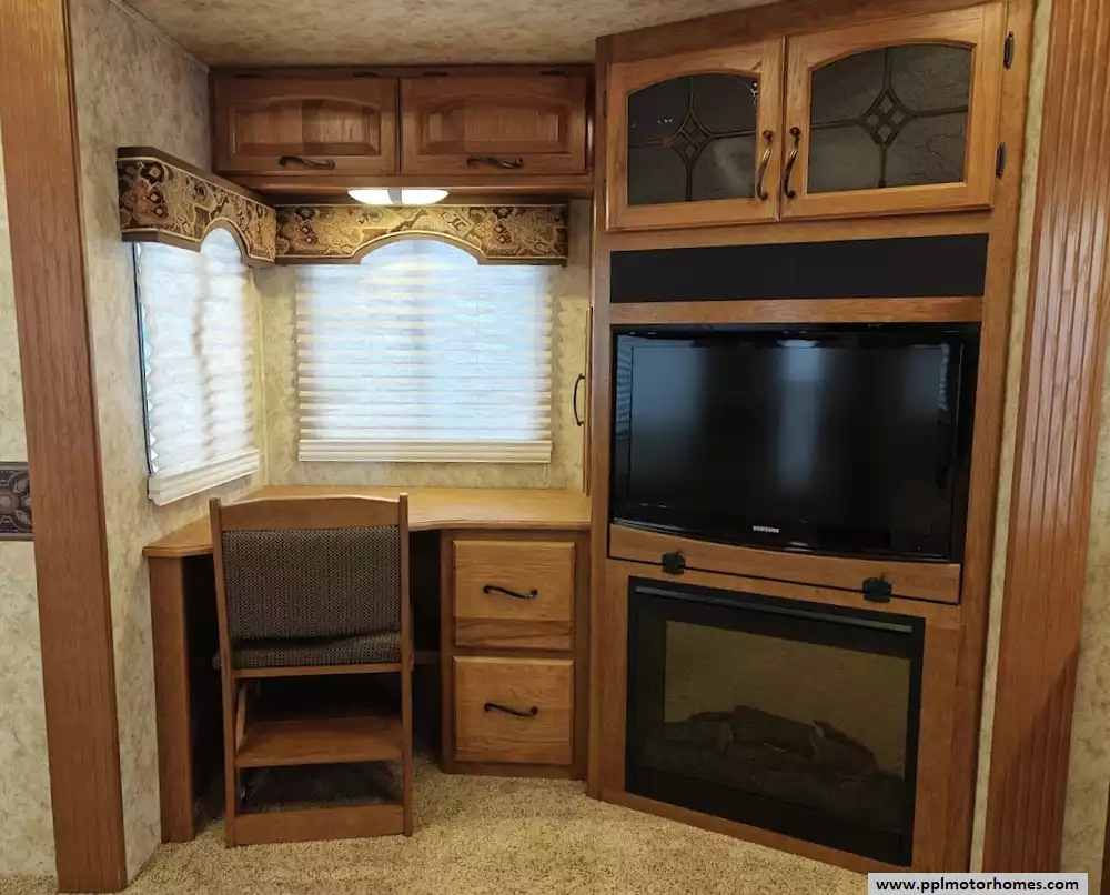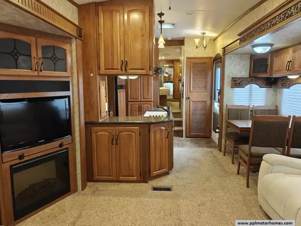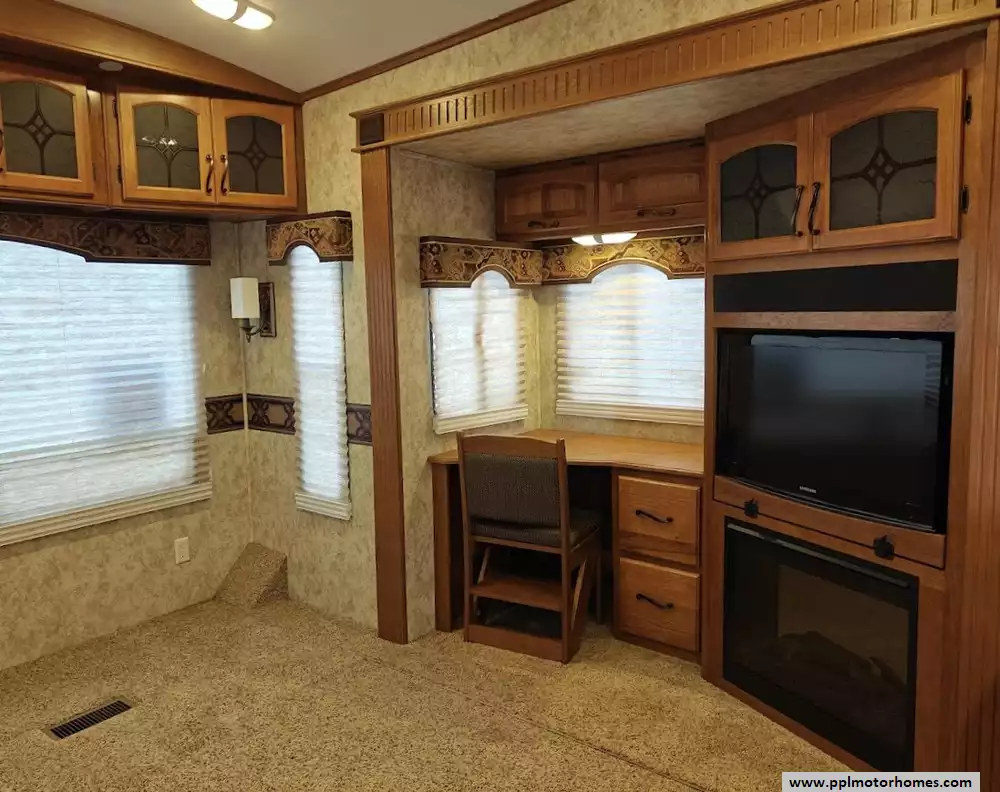 This 2011 Montana Big Sky by Keystone 3400RL sleeps up to 2 people, has a Hydraulic Landing Gear, 4 Slide-outs, 2 Ducted Air Conditioners, 4 Door 110v Norcold Refrigerator, Automatic Main Awning, Washer/Dryer Connections, Satellite Dish & Receiver, 2 TVs, Outside Shower, Fireplace, Microwave, 3 Burner Range, Oven