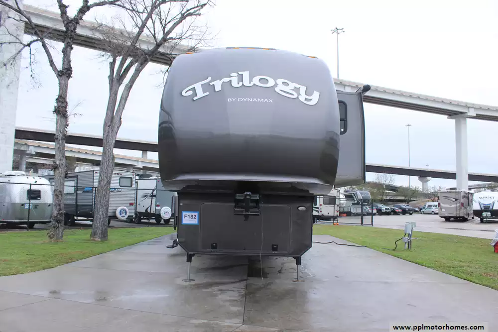 This 2012 Dynamax Trilogy 3800D3 is built for comfortable extended travel or full-time living. Comforts Include...3 Slide-outs, 2 Ducted Air Conditioners, Double Door Side by Side Residential Frigidaire Refrigerator, In-Fridge Ice Maker, Automatic Main Awning And Slide Awning, Washer/Dryer, 2 TVs, DVD Player, Outside Shower, Fireplace, and 4 Burner Range.