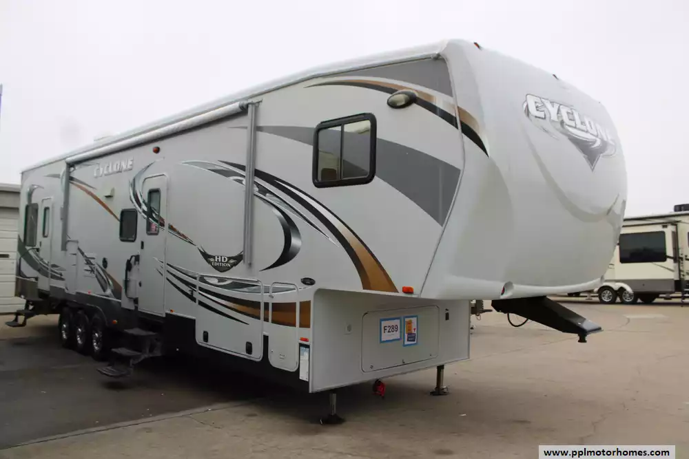 This 2012 Heartland Cyclone HD 3612 Is Looking For New Adventures! Highlights Include... A Brand-New Roof, Electric Landing Gear, Rear Electric Stabilization, 2 Slide-Outs, Onan Gas Generator, Rear Accessory Hitch, 1 Non-Ducted And 2 Ducted Air Conditioner, Double Door Gas/110v Dometic Refrigerator, Automatic Main Awning, Washer/Dryer Connections, Outside Speakers, 2 TVs, Surround Sound, Outside Shower, Fireplace, Central Vacuum System, Fuel Station, Microwave, 3 Burner Range, Oven, And More! Explore The World Around You In This Cyclone HD Toy Hauler! Ask About PPL's Financing Options And How This Cyclone Is Eligible For Protection.