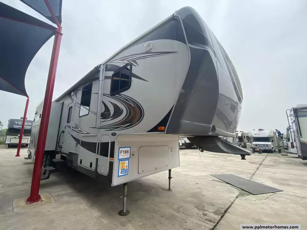 This 2012 Cyclone Toy Hauler 3712CK has an Electric Landing Gear, 3 Slide-outs, Onan Gas Generator, 1 Non-Ducted And 1 Ducted Air Conditioner, Double Door Gas/110v Dometic Refrigerator (Additional Refrigerator Present), Automatic Main Awning, Washer/Dryer Connections, Outside Speakers, TV, DVD Player, Outdoor Kitchen, Outside Shower, Central Vacuum, Microwave, 3 Burner Range, Oven