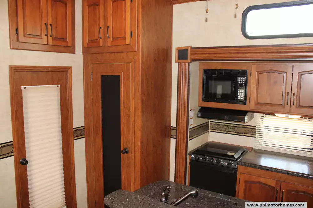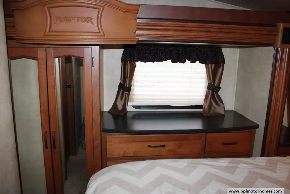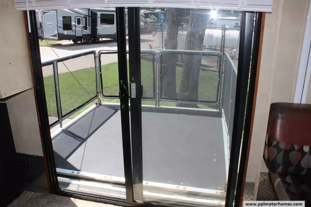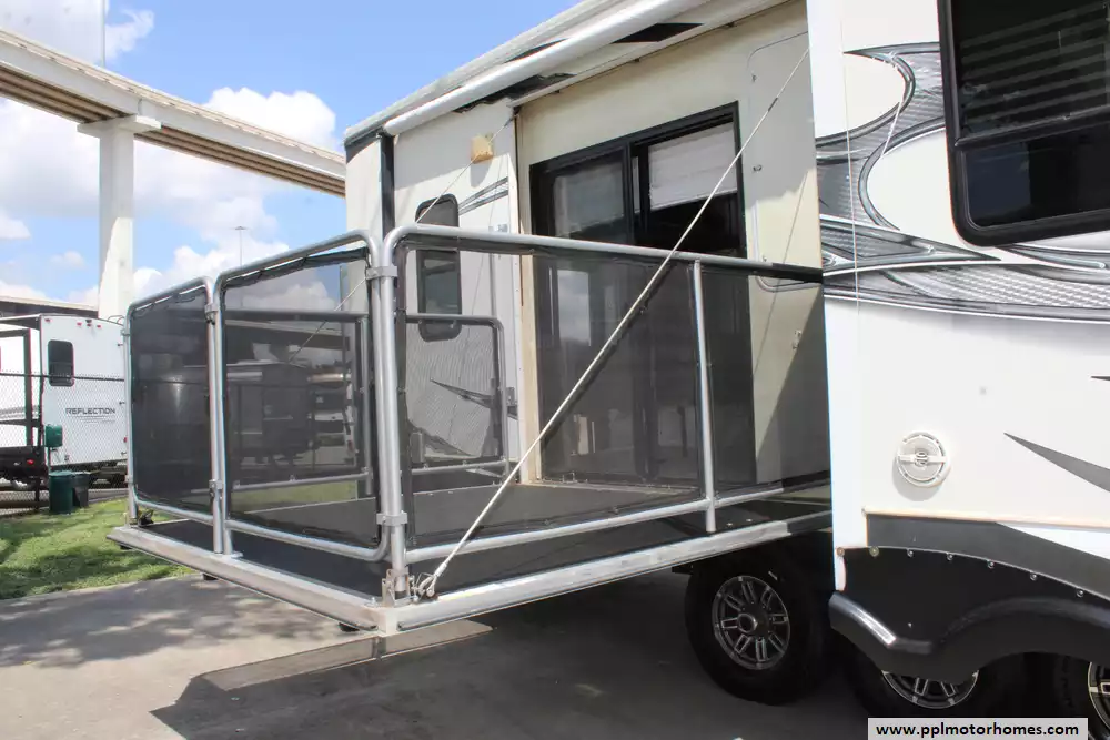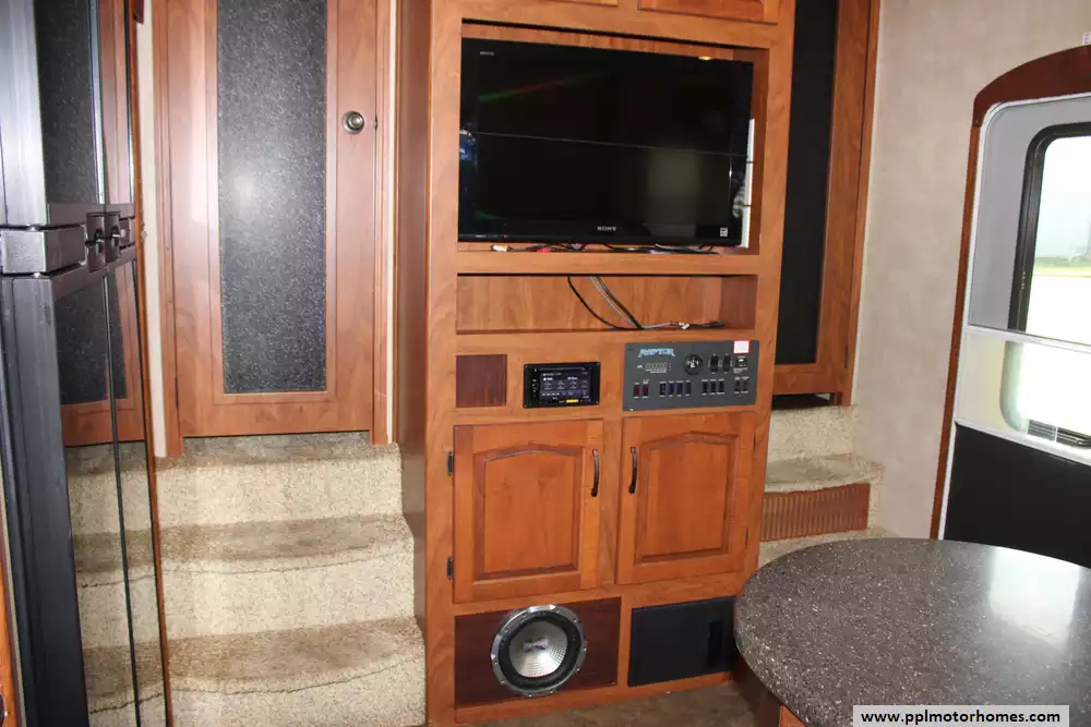 This 2012 Raptor Velocity 384PK is a large, well-equipped toy hauler suitable for folks who want a combination of hauling capacity plus comfort. 14' of cargo space, Features Include...Hydraulic Landing Gear, 3 Slide-outs, Onan Gas Generator, 3 Ducted Air Conditioners, 4 Door Gas/110v Norcold Refrigerator (Additional Refrigerator Present), Automatic Main Awning, Outside Entertainment System, 2 TVs, Outside Shower, Outside Grill, Microwave, 3 Burner Range, and Oven.