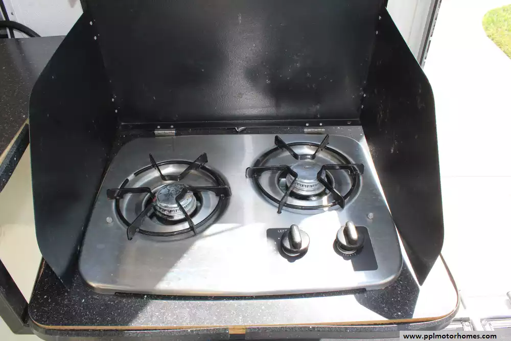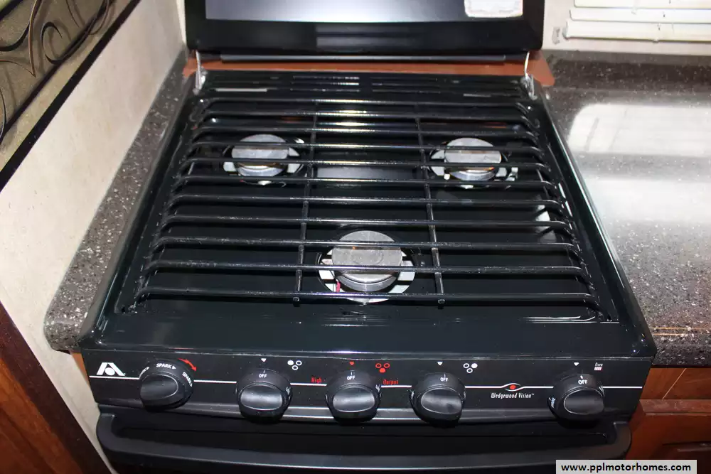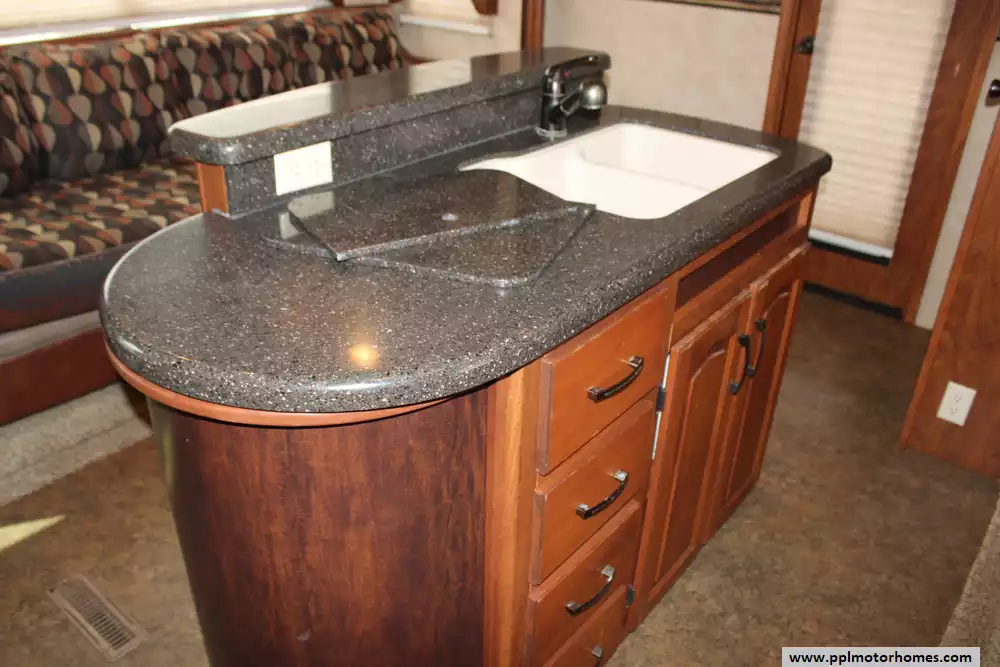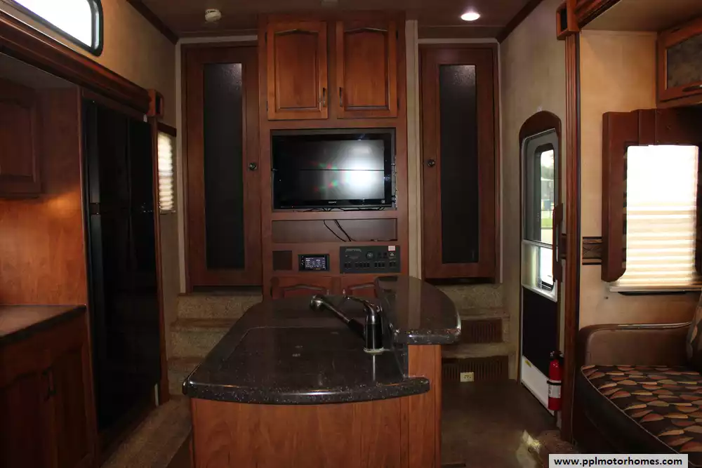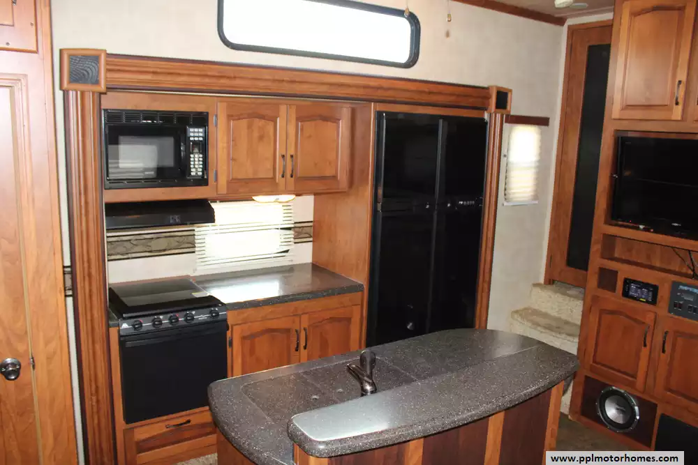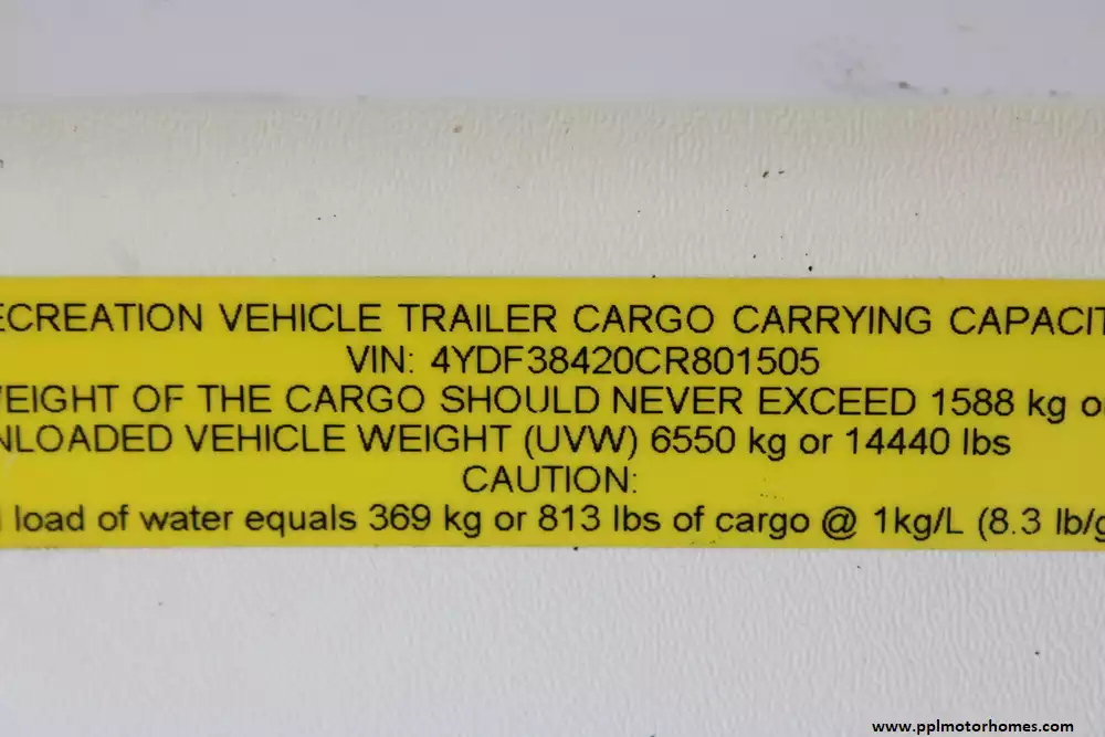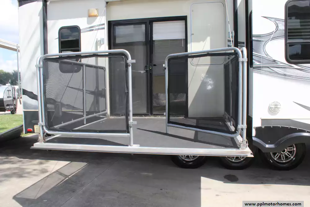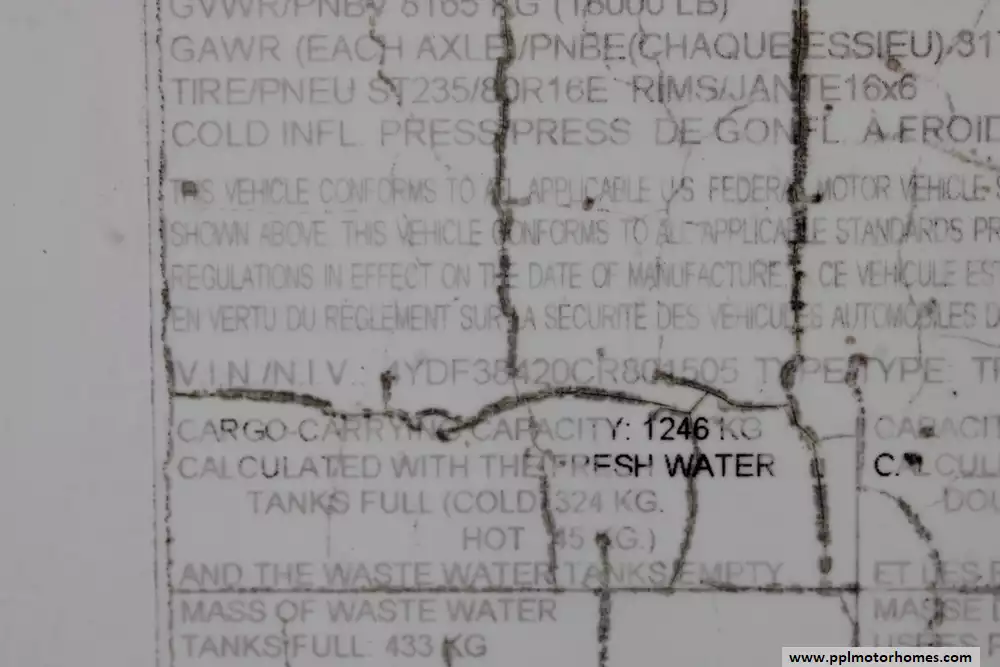 Specs: Length: 41.58 ft., Width: 8.5 ft., Height: 13.5 ft., Payload Capacity: 3,585 lbs., Total Fresh Water Tank Capacity: 110 gal., Total Gray Water Tank Capacity: 76 gal., Total Black Water Tank Capacity: 39gal., Number of Propane Tanks: 2, Total Propane Tank Capacity: 60 lbs.