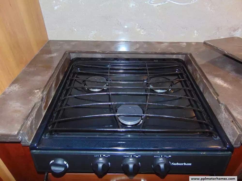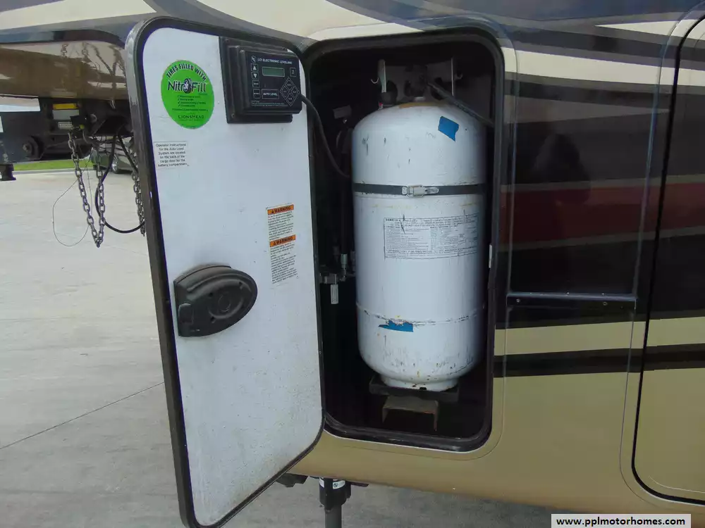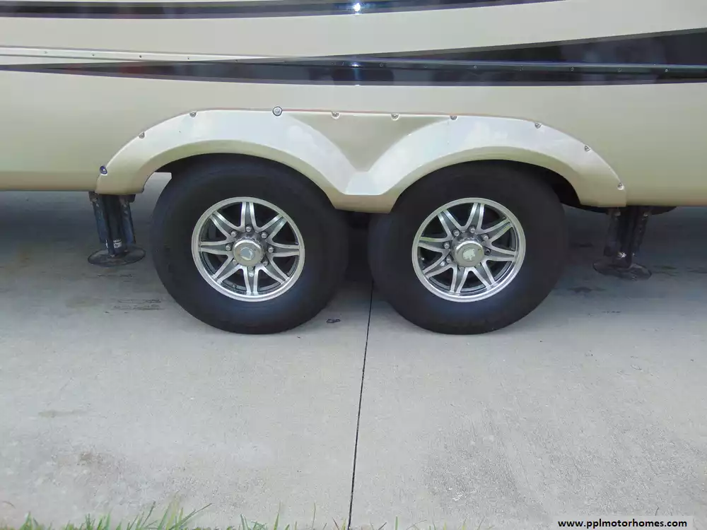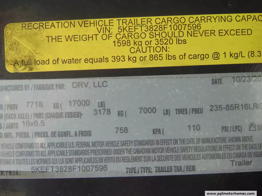 Specs: Length: 38.25 ft., Width: 8 ft., Height: 13.33 ft., Interior Height: 8 ft., Total Fresh Water Tank Capacity: 100 gal., Total Gray Water Tank Capacity: 90 gal., Total Black Water Tank Capacity: 45 gal., Total Number of Propane Tanks 2, Propane Tank Capacity: 60 lbs.