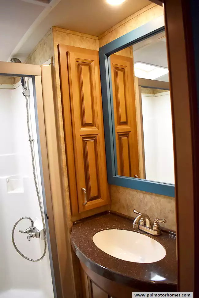 (Floor plan is NOT drawn to scale. Length of vehicle is approximate. Buyer is responsible for verifying actual length. PPL Motor Homes compiled this list of features, specifications, equipment and options as a guide. No representation or warranties, either express or implied, are made as to the accuracy of the information herein. Please verify for yourself all items listed before purchase.)