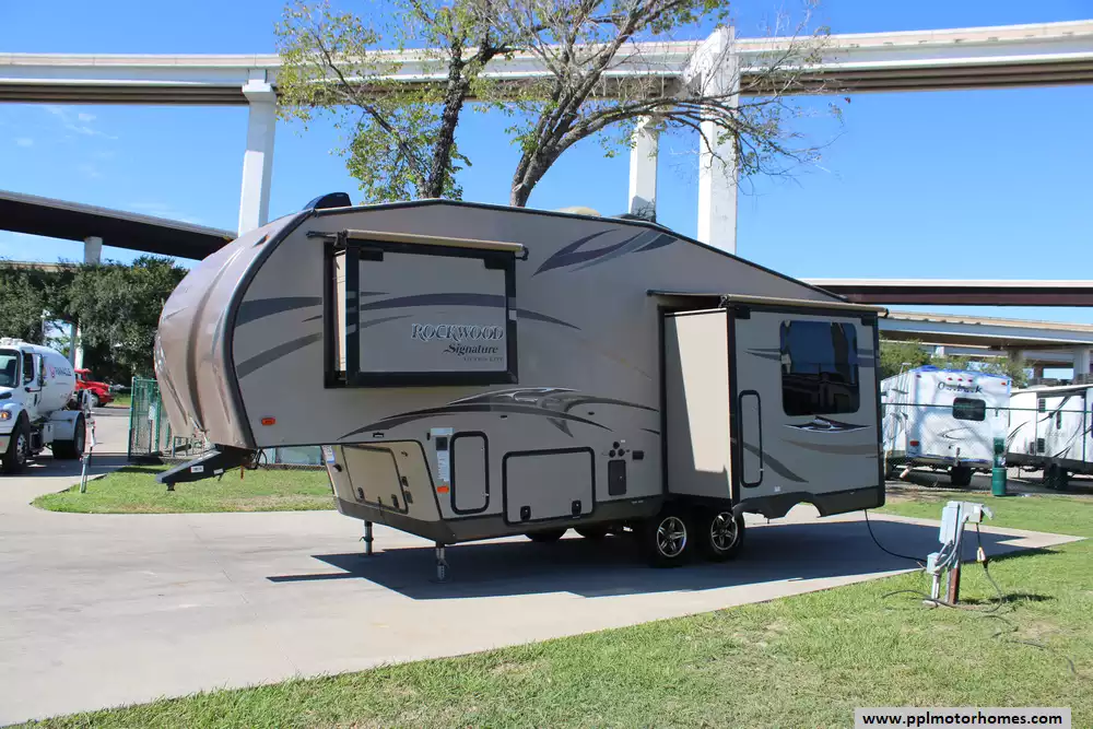 Your Time Spent In This 2015 Rockwood Signature Ultra Lt 8244WS Promises Many Hours of Relaxation and Cherished Memories.Features Include...Has a 2 Slide-outs, 1 Ducted Air Conditioner, Double Door Gas/110v Dometic Refrigerator, Automatic Main Awning And Slide Awning, Outside Speakers, 2 TVs, DVD Player, Outside Shower, Microwave, 3 Burner Range,and Oven.You Will Want to Get Back to Your Travels Time and Time Again!