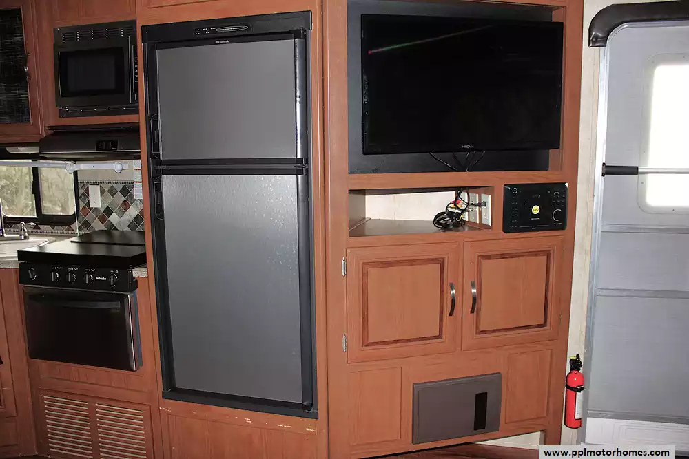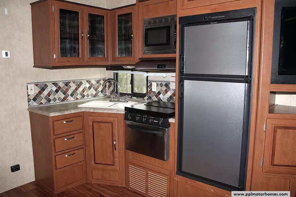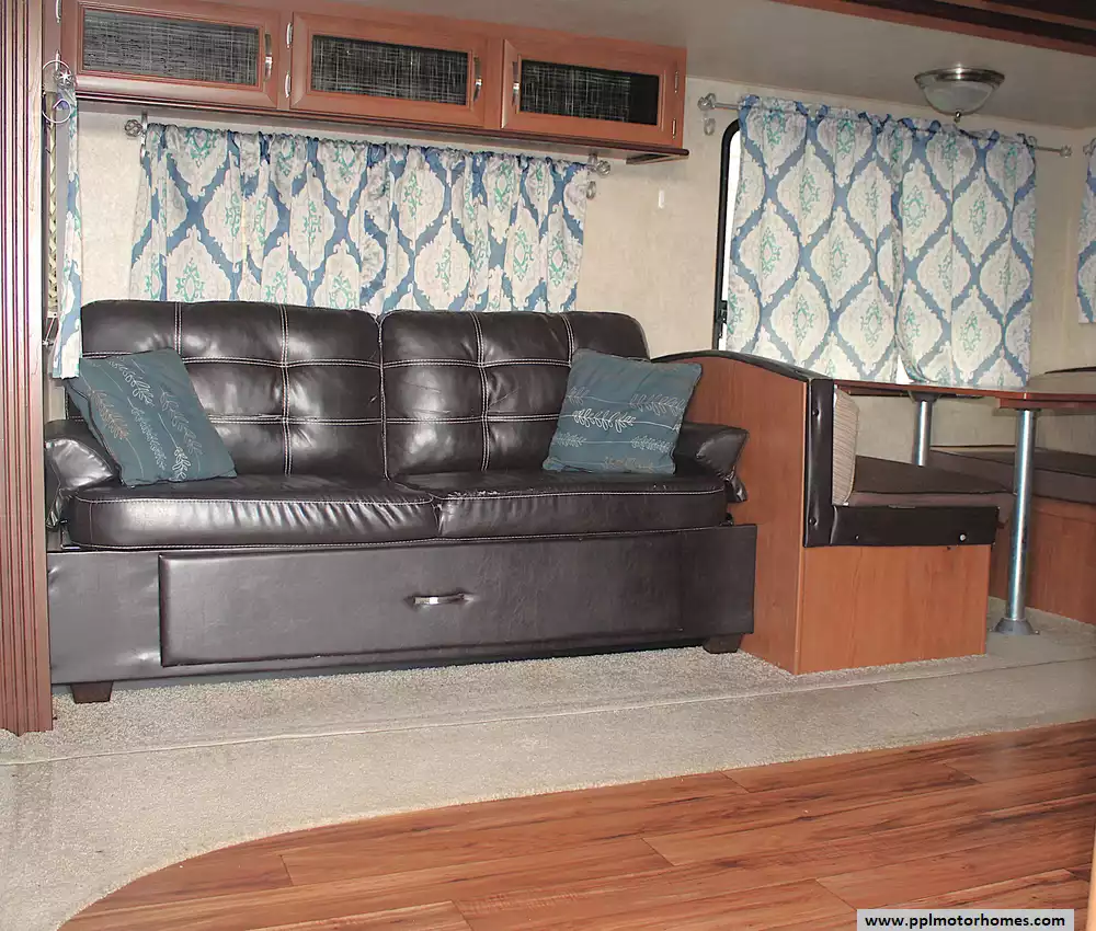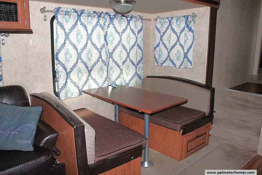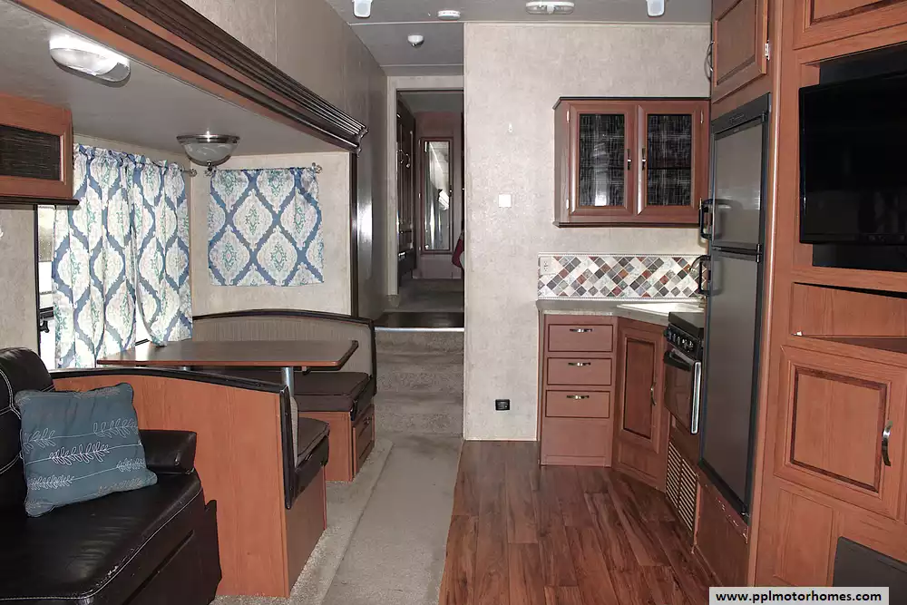 2015 Forest River Wildwood 29RLW, a beautifully designed travel trailer that blends spacious living with the freedom of the open road. Its inviting rear-living floorplan creates a warm and relaxing atmosphere with comfortable seating, large panoramic windows, and plenty of natural light-perfect for enjoying quiet mornings at the campground or relaxing after a day of exploring. The well-equipped kitchen offers generous counter space, a three-burner cooktop, oven, microwave, refrigerator, and abundant cabinet storage so you can prepare meals just like at home.
