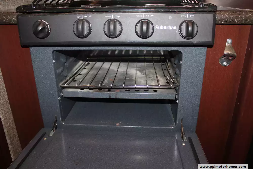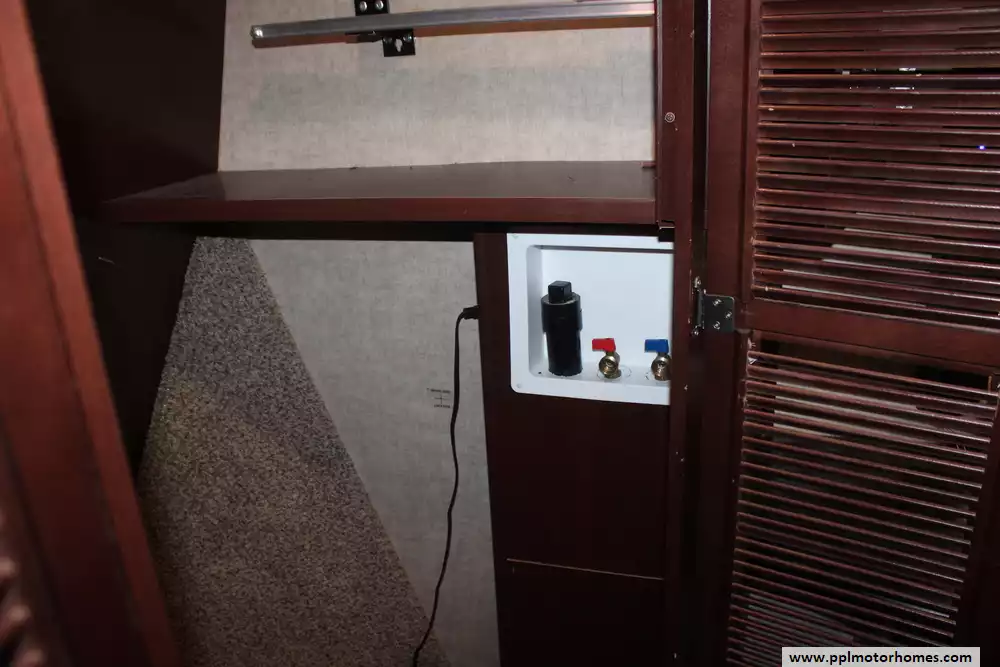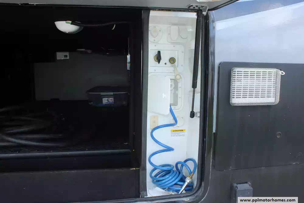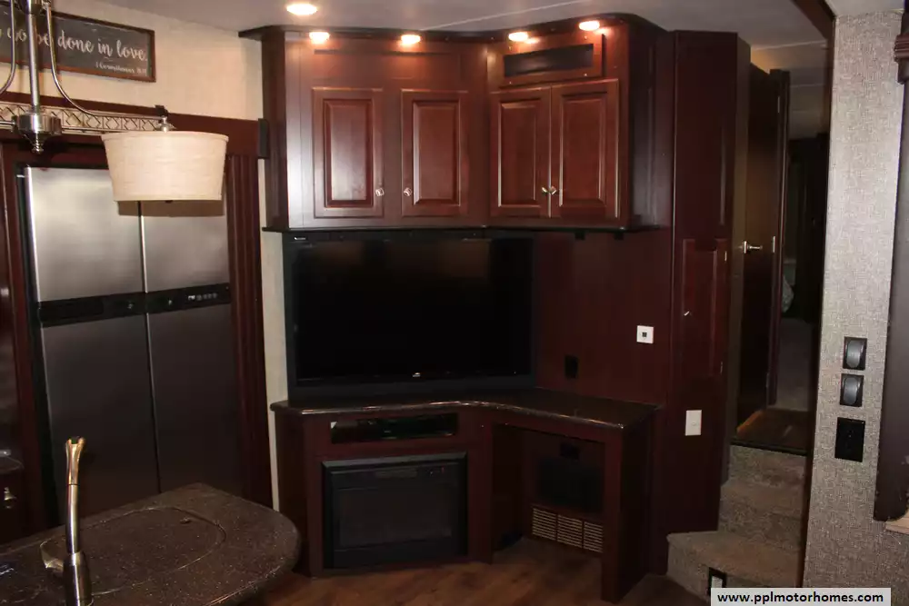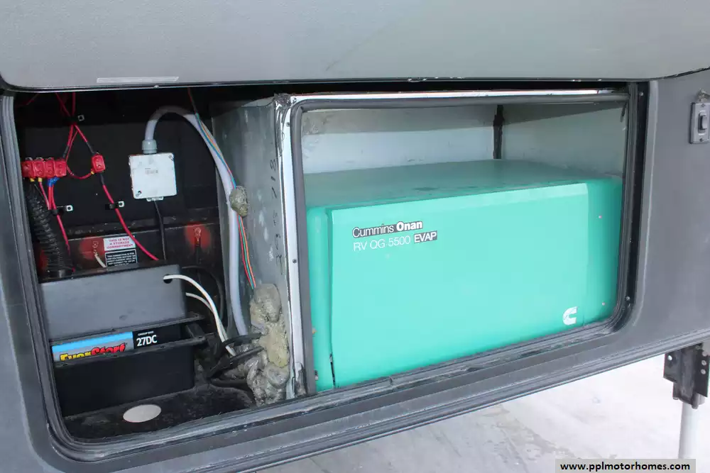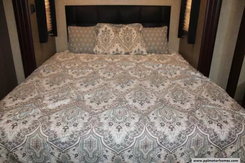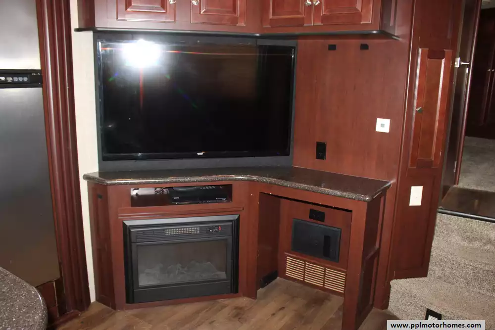 The interior is packed with high-end amenities to elevate your camping experience, starting with a fully equipped kitchen featuring a four-door Norcold gas/electric refrigerator with a built-in ice maker, a microwave, and a three-burner range. Stay comfortable and self-sufficient anywhere with the onboard Onan gas generator and the convenience of a central vacuum system and washer/dryer connections. Entertainment is covered with three TVs and a DVD player, while the automatic main awning and outside shower make outdoor living effortless. From its massive storage capacity to its refined finishes, this Road Warrior 415 is ready to lead your next journey in style.