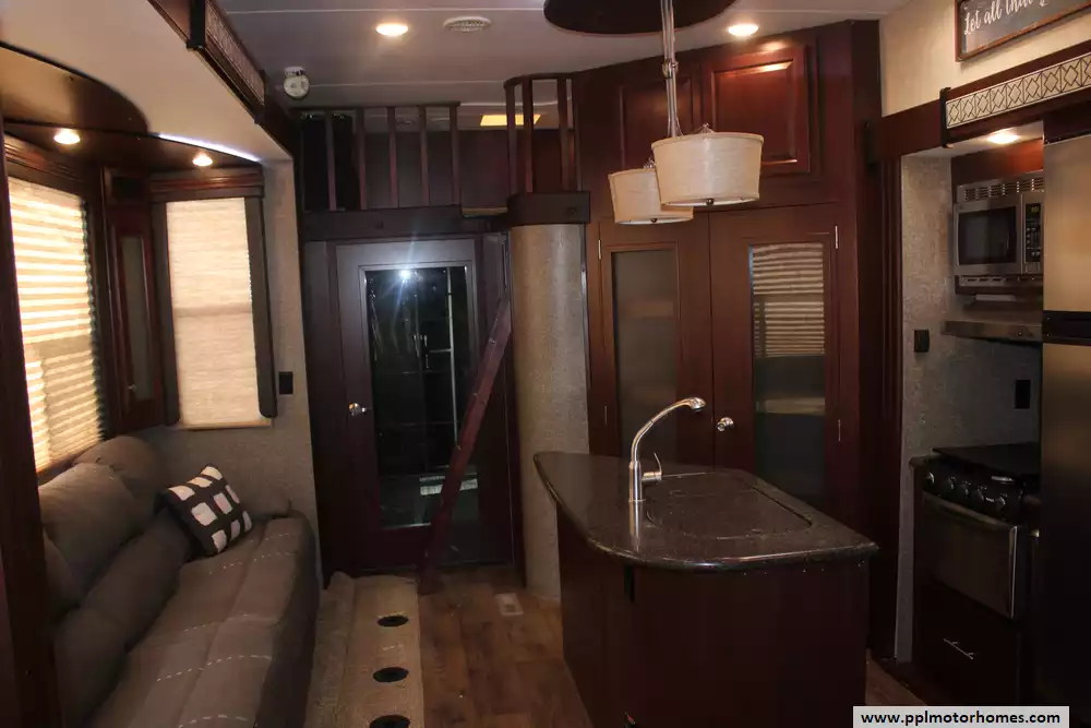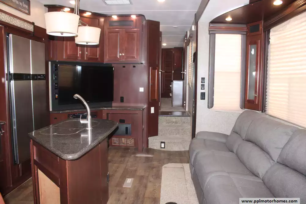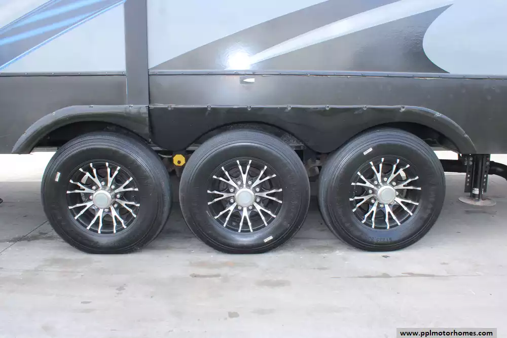 Specs: Length: 42.11 ft., Payload Capacity: 2,555 lbs., Total Fresh Water Tank Capacity: 110 gal., Total Gray Water Tank Capacity: 82 gal., Total Black Water Tank Capacity: 41 gal., Total Propane Tank Capacity: 60 lbs.