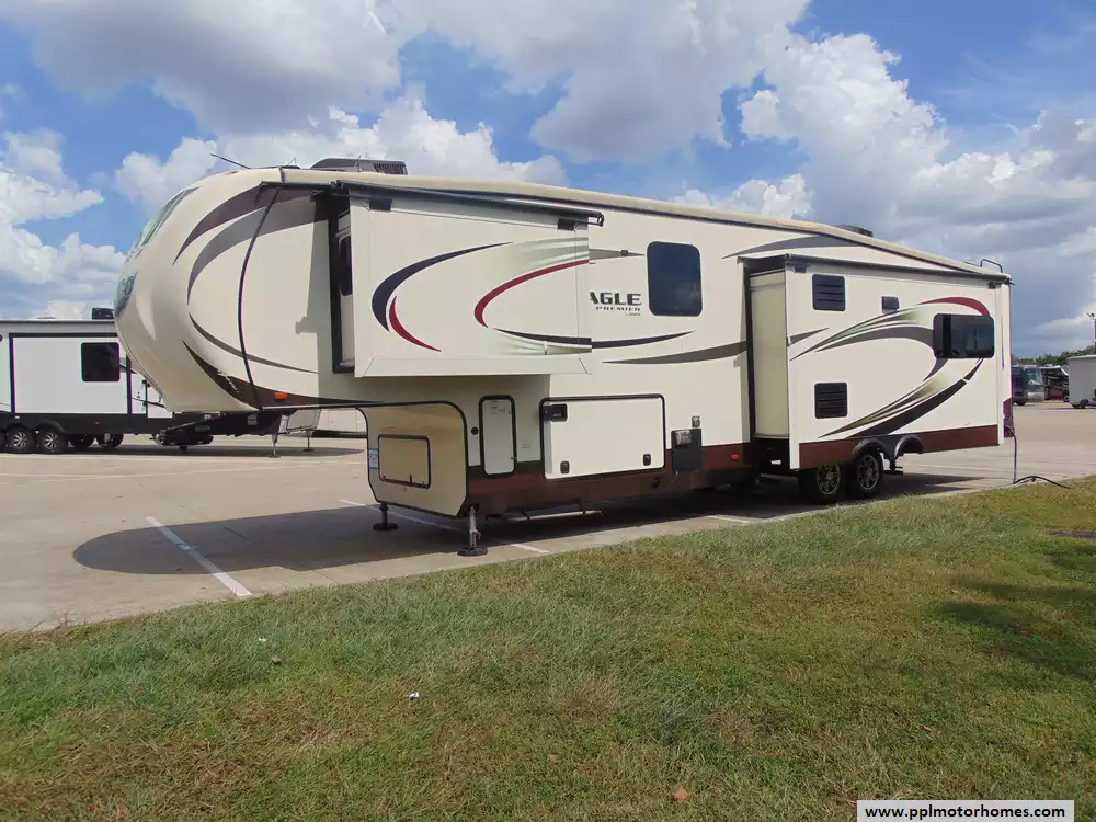 This 2015 Eagle Premier 351RSTS is a luxury fifth-wheel RV,designed for those who seek a spacious and comfortable home on wheels.This RV offers plenty of living space and is ideal for extended stays or full-time RVing.Features Include...Electric Landing Gear,3 Slide-outs, 2 Ducted Air Conditioners, 5500 Onan Gas Generator, 4 Door Gas/110v Norcold Refrigerator, Automatic Main Awning And Window/Slide/Door Awnings, Washer/Dryer, Outside Entertainment System, 3 TVs, Outdoor Kitchen, Outside Shower, Fireplace, Convection Microwave, 3 Burner Range,and Oven.With its mix of luxury and practical features,it offers a high-quality RV experience perfect for long-term travel or full-time living.