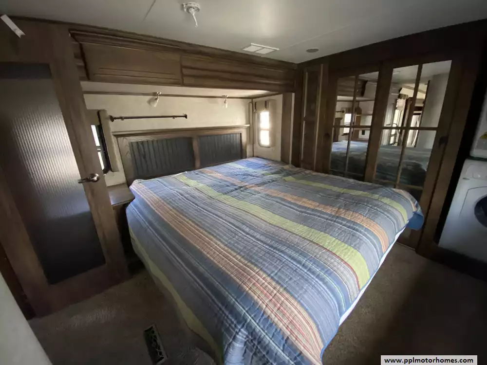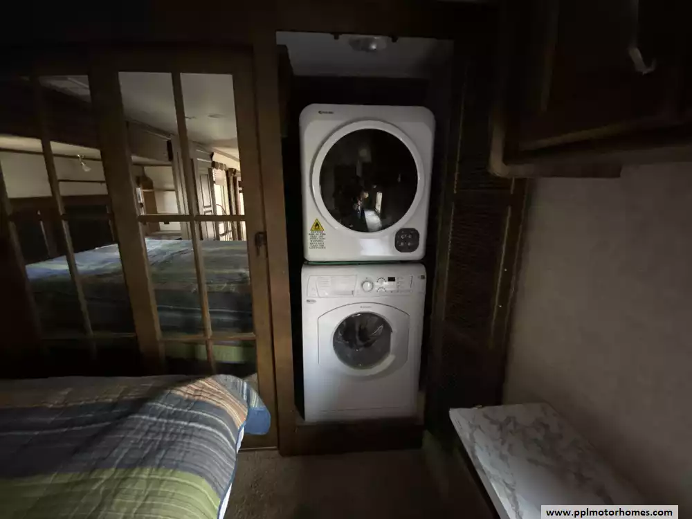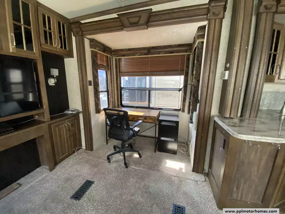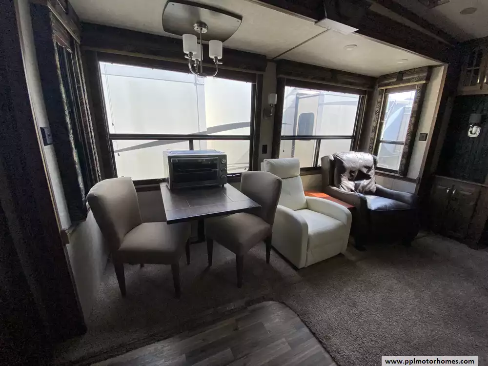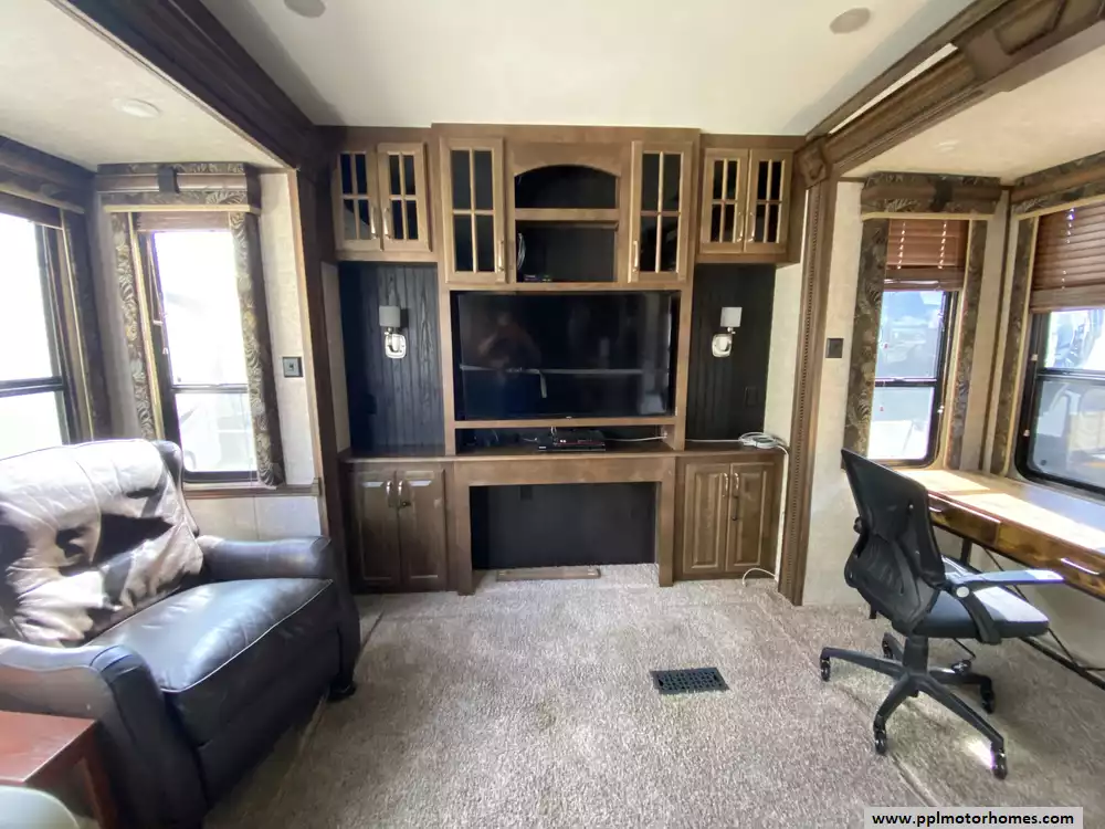 This 2015 Alpine 3536RE has a Hydraulic Landing Gear, 4 Slide-outs, 1 Non-Ducted And 2 Ducted Air Conditioner, Double Door 110v Residential Samsung Refrigerator, In-Fridge Ice Maker, Automatic Main Awning And Slide Awning, Washer/Dryer, Dishwasher, Satellite Dish & Receiver, 2 TVs, DVD Player, Outside Shower, Microwave, 2 Burner Range, Oven, King Size Bed with a Sleep Number Mattress and an extra pump.