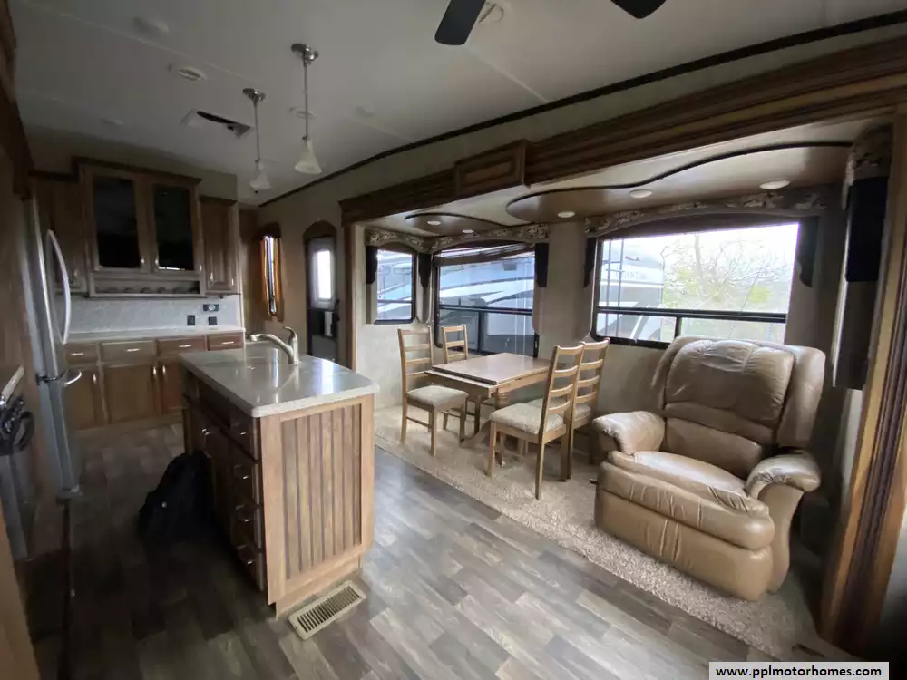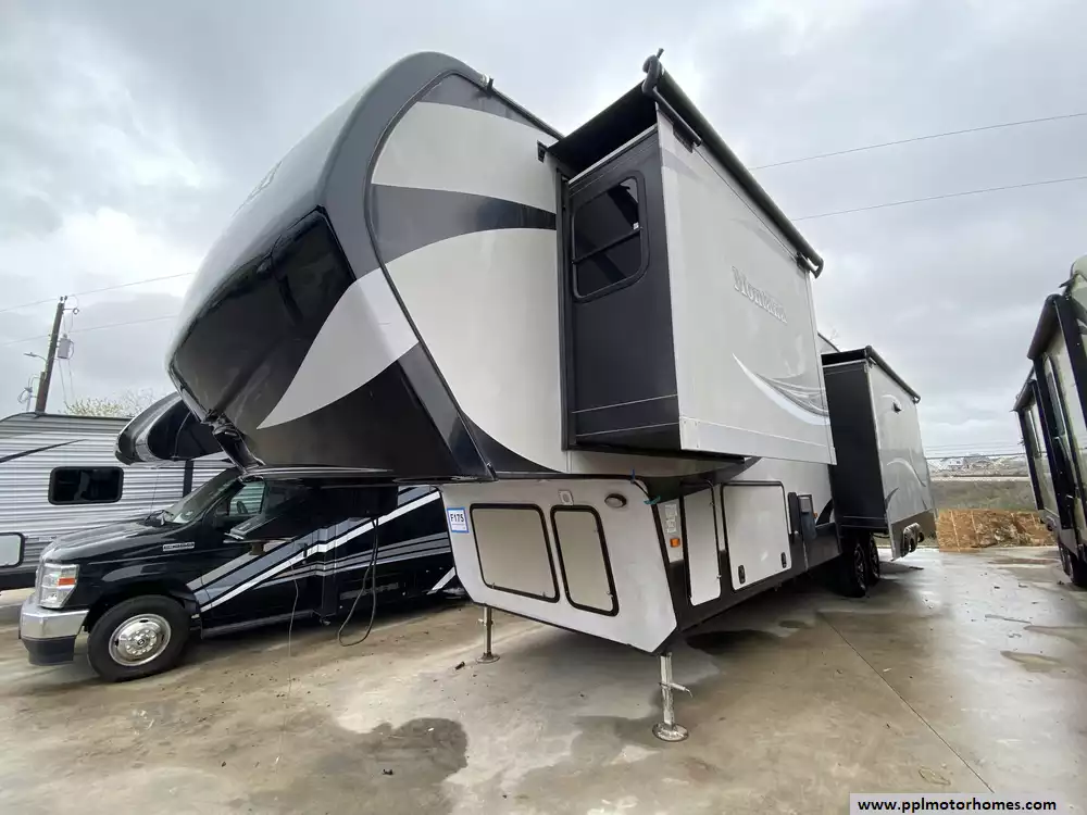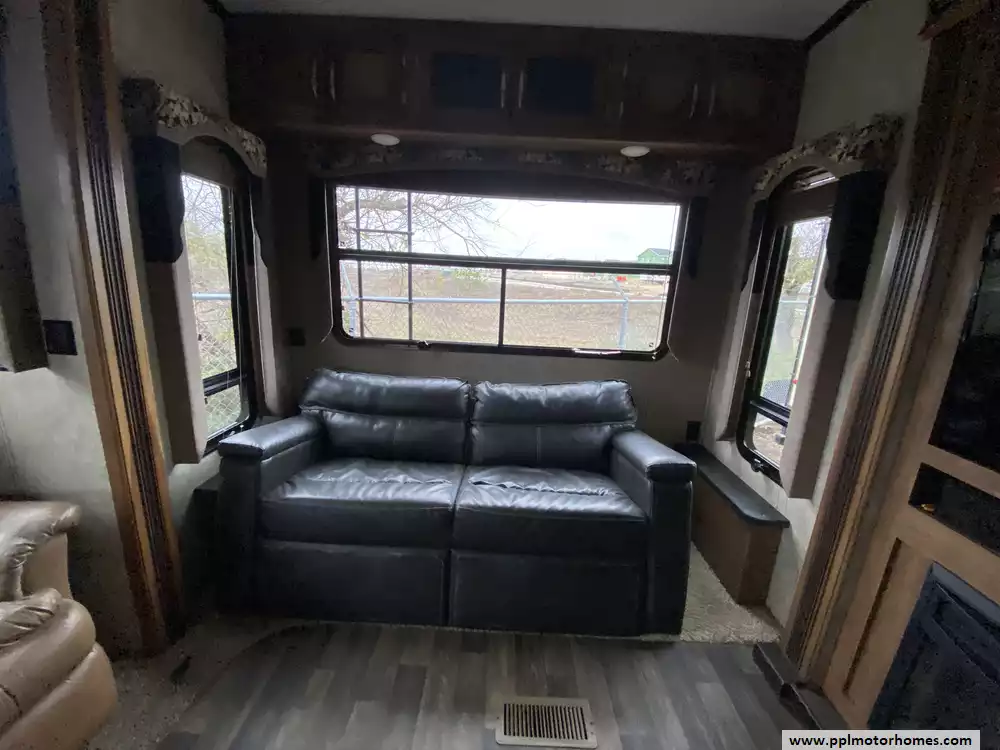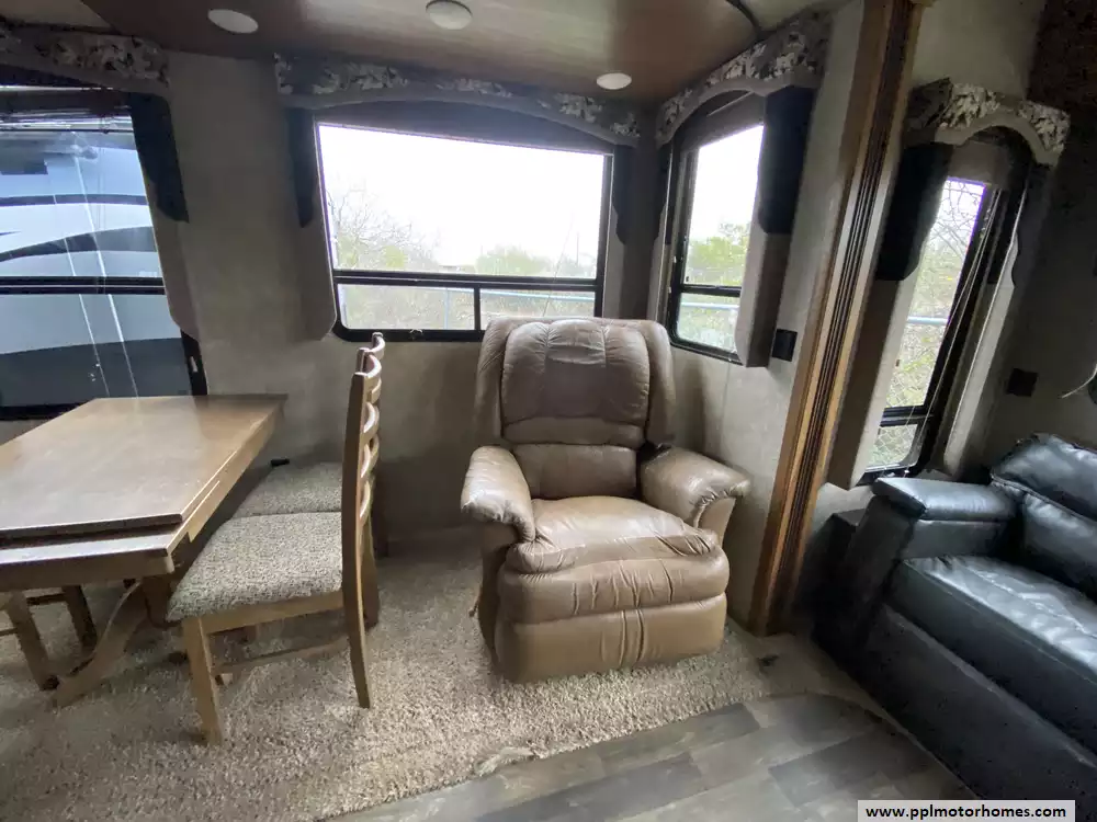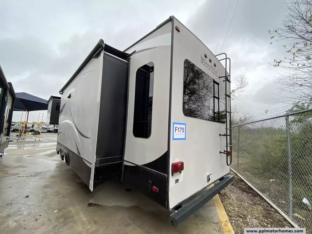This 2015 Montana High Country 353RL has an Electric Landing Gear, 3 Slide-outs, Double Door 12v Residential Samsung Refrigerator, In-Fridge Ice Maker, Automatic Main Awning, Washer/Dryer Connections, Outside Speakers, TV, Outside Shower, Microwave, Oven