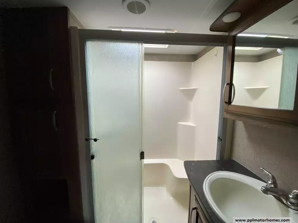 (Floor plan is NOT drawn to scale. Length of vehicle is approximate. Buyer is responsible for verifying actual length. PPL Motor Homes compiled this list of features, specifications, equipment and options as a guide. No representation or warranties, either express or implied, are made as to the accuracy of the information herein. Please verify for yourself all items listed before purchase.)