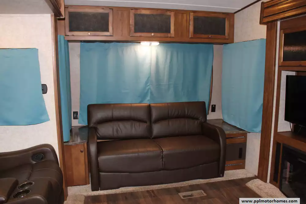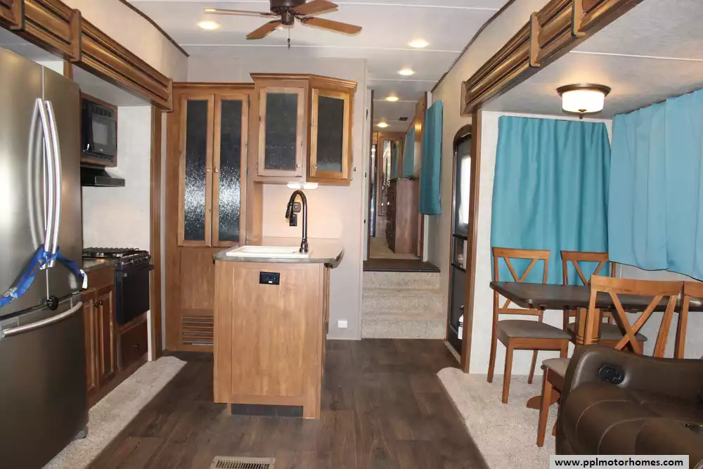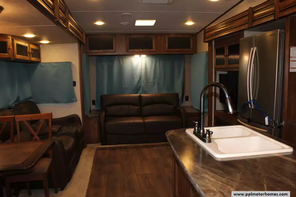 This 2015 Sprinter by Keystone 298FWRLS is a spacious, rear-living floorplan with lots of modern amenities ideal for families or couples traveling in comfort. Features Include...Electric Landing Gear, 3 Slide-outs, 1 Non-Ducted And 1 Ducted Air Conditioner, Double Door 110v Residential Samsung Refrigerator, Automatic Main Awning, Outside Speakers, TV, Fireplace, Microwave, 3 Burner Range, and Oven.