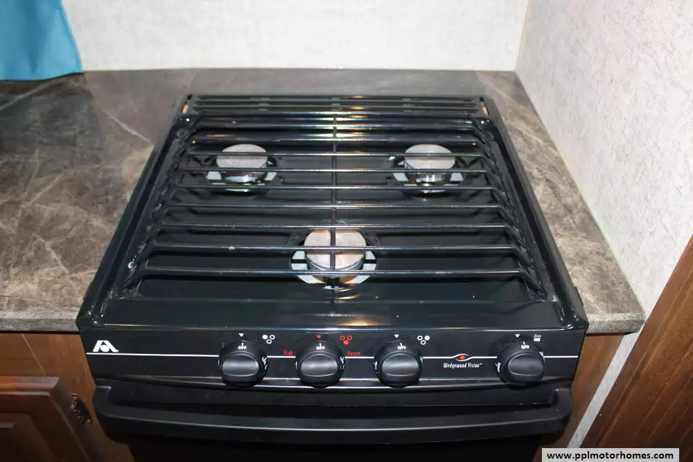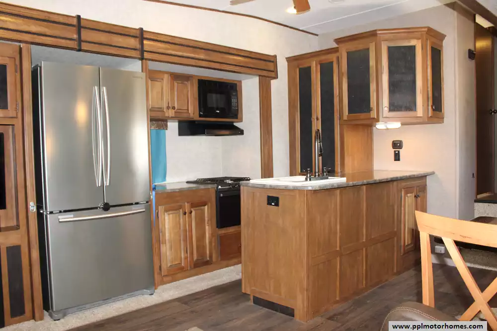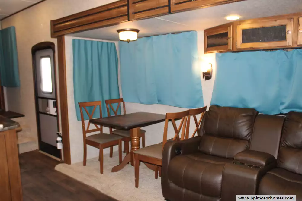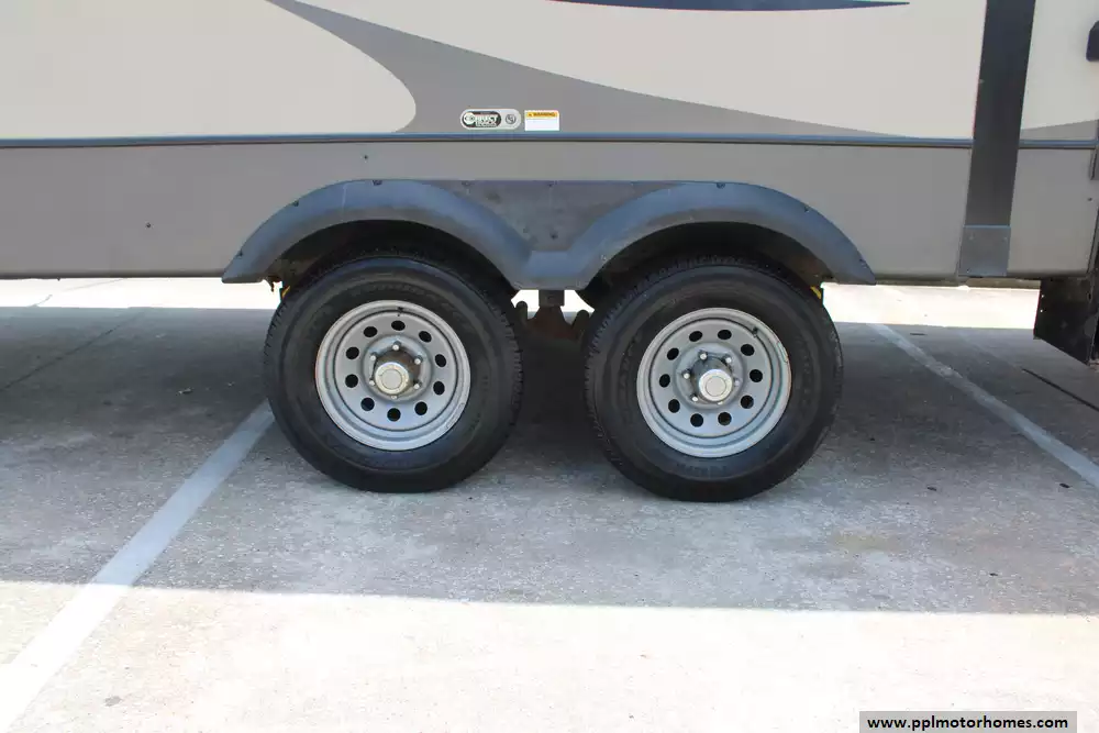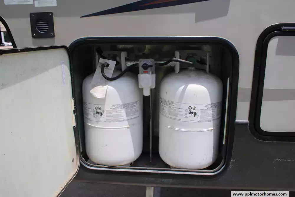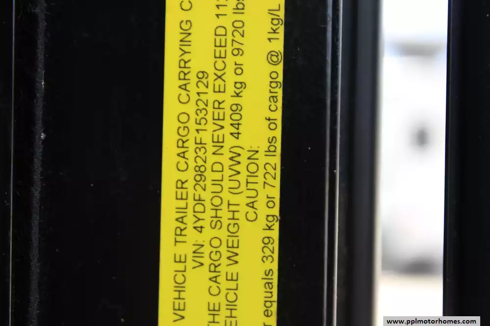 Specs: Length: 34.58 ft., Width: 8.33 ft., Height: 12.5 ft., Payload Capacity: 2,385 lbs., Total Fresh Water Tank Capacity: 87 gal., Total Gray Water Tank Capacity: 80 gal., Total Black Water Tank Capacity: 40 gal., Total Number of Propane Tanks: 2, Total Propane Tank Capacity: 60 lbs.