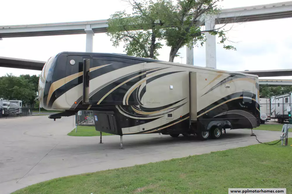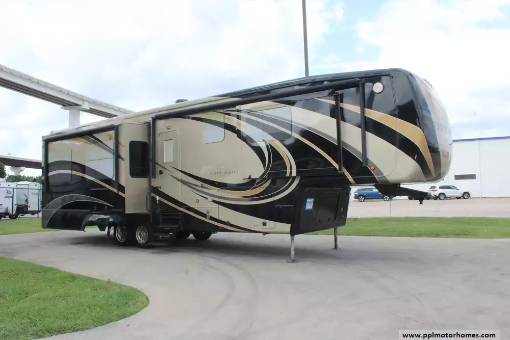 This 2016 Elite Suites 38RSSA is designed for discerning travelers seeking high-end amenities and spacious living quarters. Features Include...4 Slide-outs, 2 Ducted Air Conditioners, Residential Refrigerator, Automatic Main Awning, Washer/Dryer, Outside Entertainment System, 3 TVs, Fireplace, Convection Microwave, 3 Burner Range, and Oven. The 2016 DRV Elite Suites 38RSSA combines residential comforts with the mobility of an RV, making it an ideal choice for extended travel or full-time living.