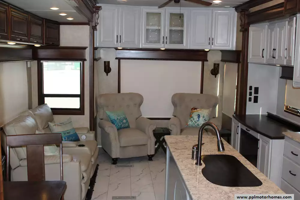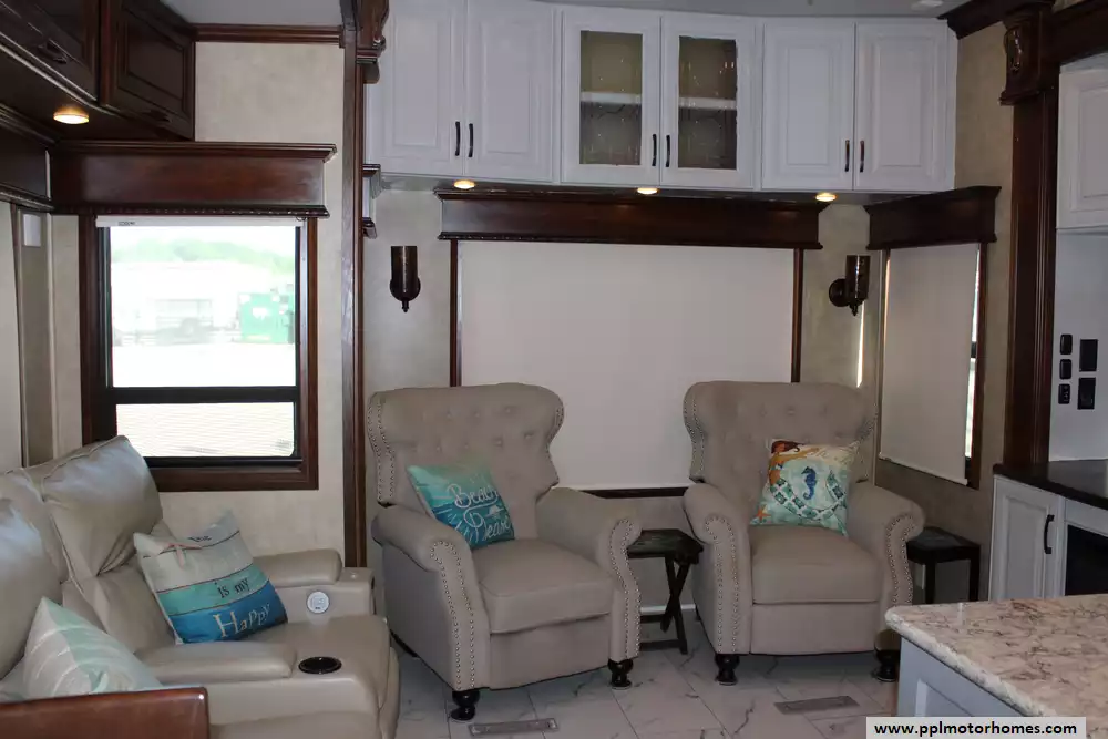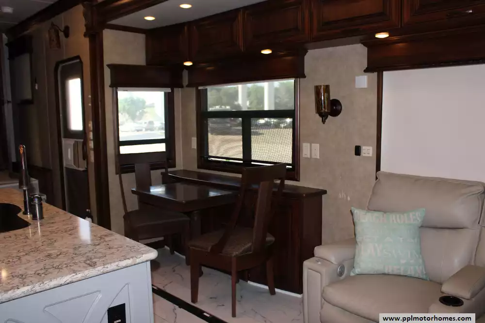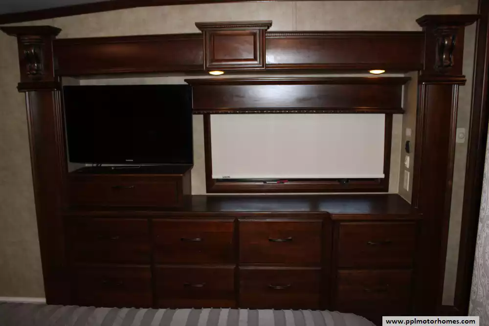 This 2016 Elite Suites 38RSSA is designed for discerning travelers seeking high-end amenities and spacious living quarters. Features Include...4 Slide-outs, 2 Ducted Air Conditioners, Residential Refrigerator, Automatic Main Awning, Washer/Dryer, Outside Entertainment System, 3 TVs, Fireplace, Convection Microwave, 3 Burner Range, and Oven. The 2016 DRV Elite Suites 38RSSA combines residential comforts with the mobility of an RV, making it an ideal choice for extended travel or full-time living.