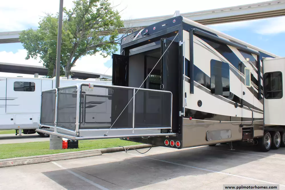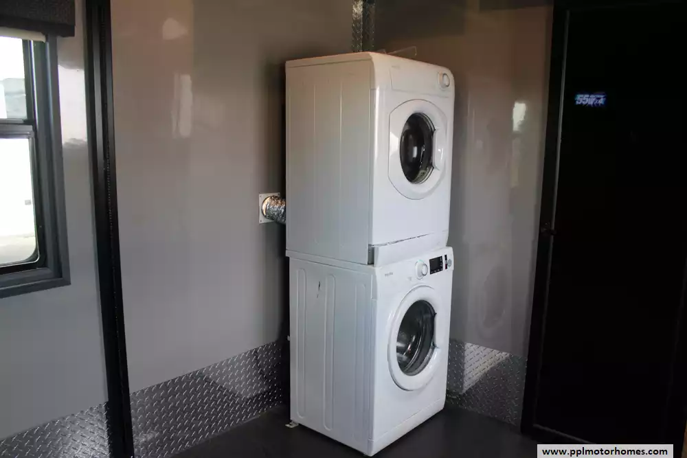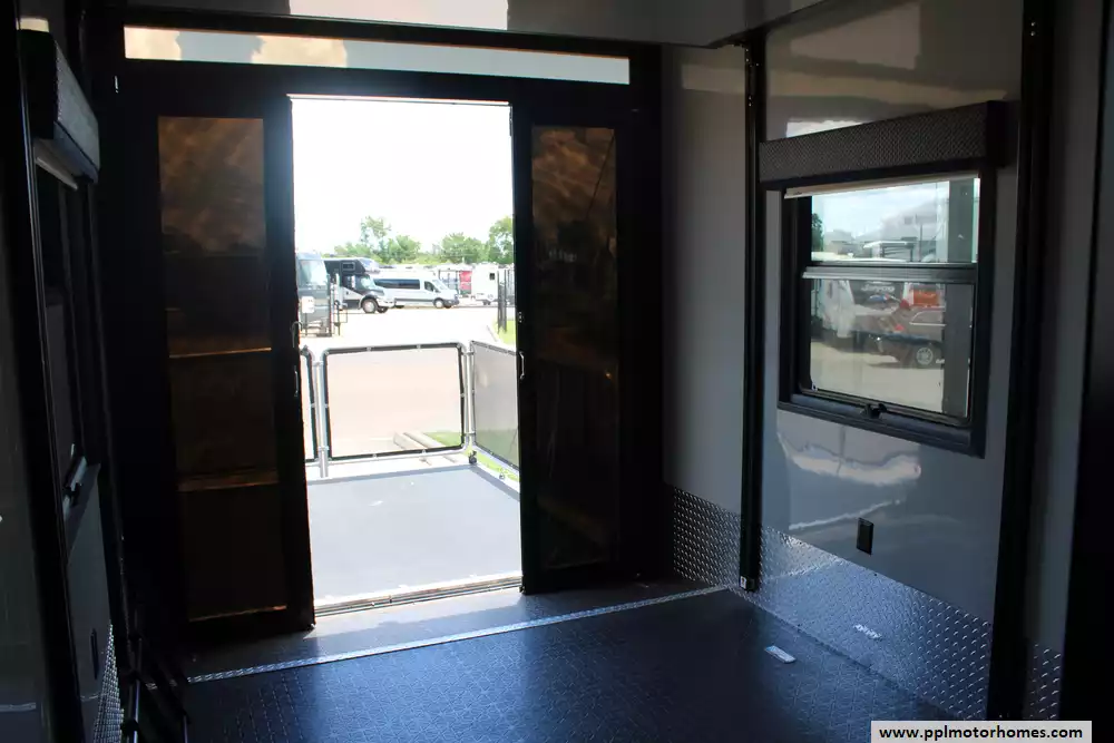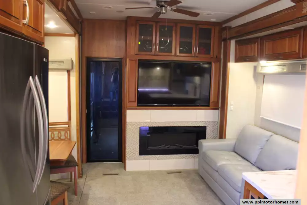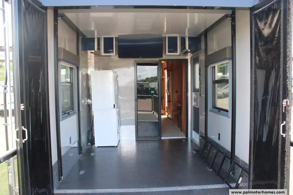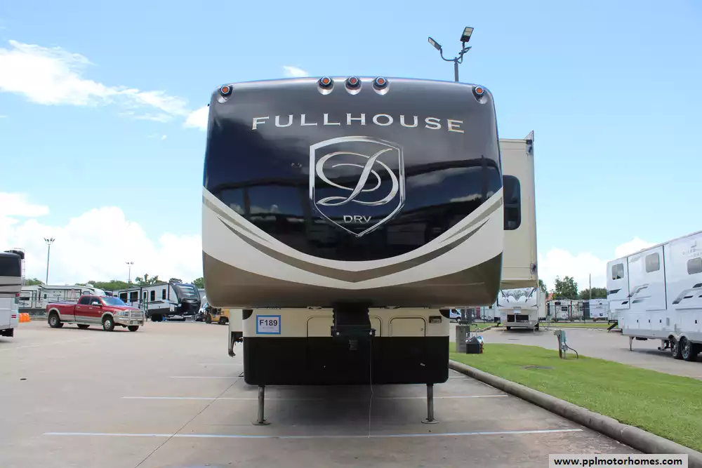 This 2016 Full House LX450 offers comfort, powerful utilities, and serious storage. Features Include...Hydraulic Landing Gear, 4 Slide-outs, Onan Gas Generator, 3 Ducted Air Conditioners, 110v Residential Refrigerator, In-Fridge Ice Maker, Automatic Main Awning, Washer/Dryer, Outside Speakers, 3 TVs, Outside Shower, Fireplace, Central Vacuum, Microwave, and 3 Burner Range. This rig is ideal for full-timer or recreational users who want luxury toy-hauler amenities.