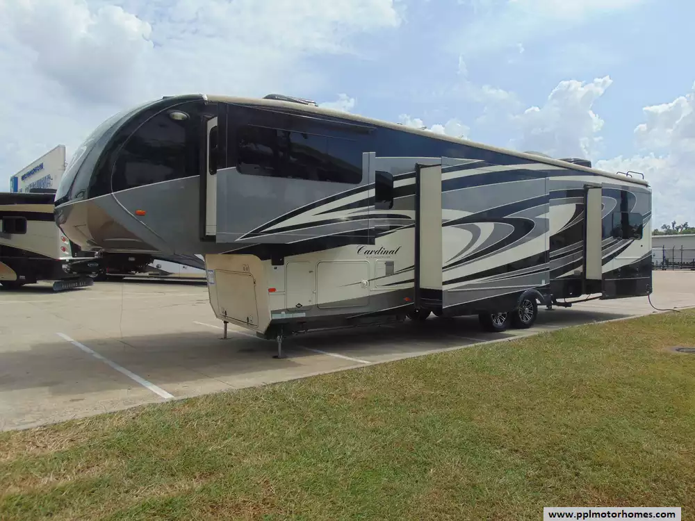 This 2016 Cardinal 3825FL is a luxurious fifth wheel designed for those who seek elegance and comfort while on the road.This model stands out with its spacious layout,high-end finishes,and thoughtful features,making it an ideal choice for extended stays or full-time RV living.Features Include...5 Slide-outs, 2 Ducted Air Conditioners, Residential Frigidaire Refrigerator, In-Fridge Ice Maker, Automatic Main Awning,Theatre Seating, Washer/Dryer, Dishwasher, Satellite Dish, Outside Speakers, 3 TVs, DVD Player, Outside Shower, Fireplace, Convection Microwave, 3 Burner Range,and Oven.With its blend of luxury,functionality,and high-end finishes,the Cardinal offers an exceptional RV living experience.