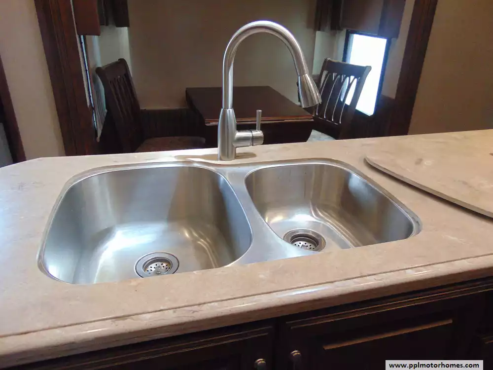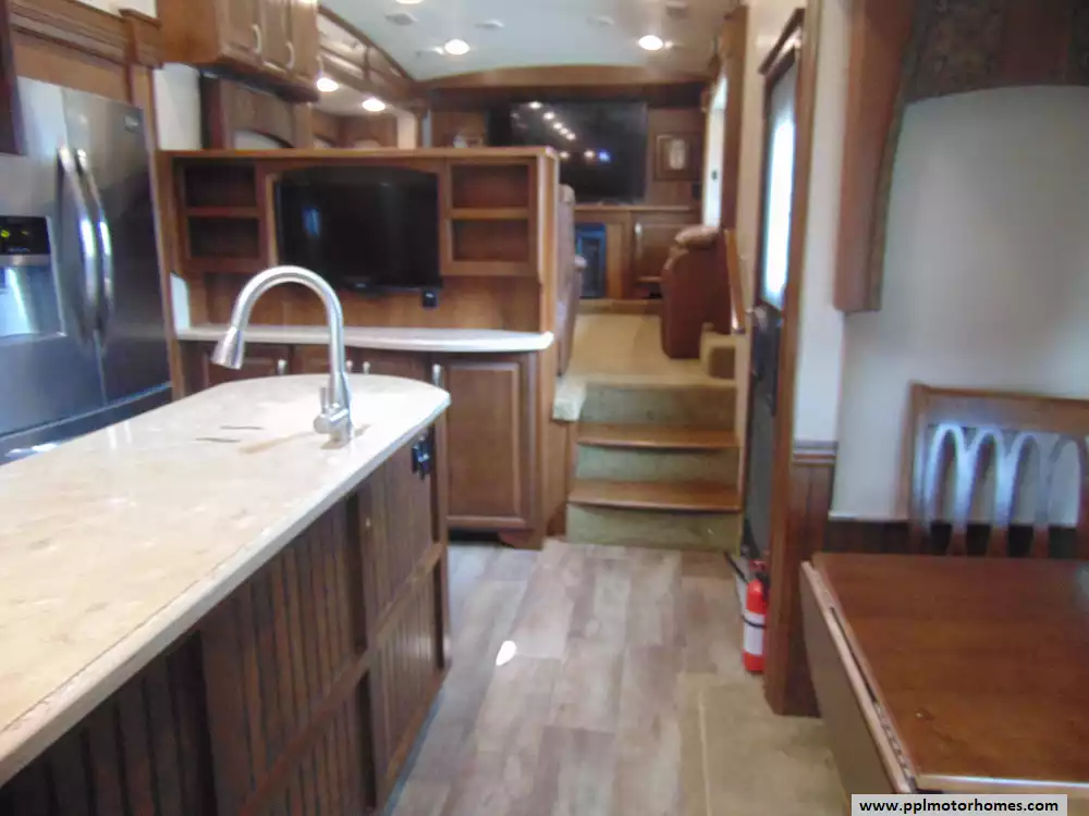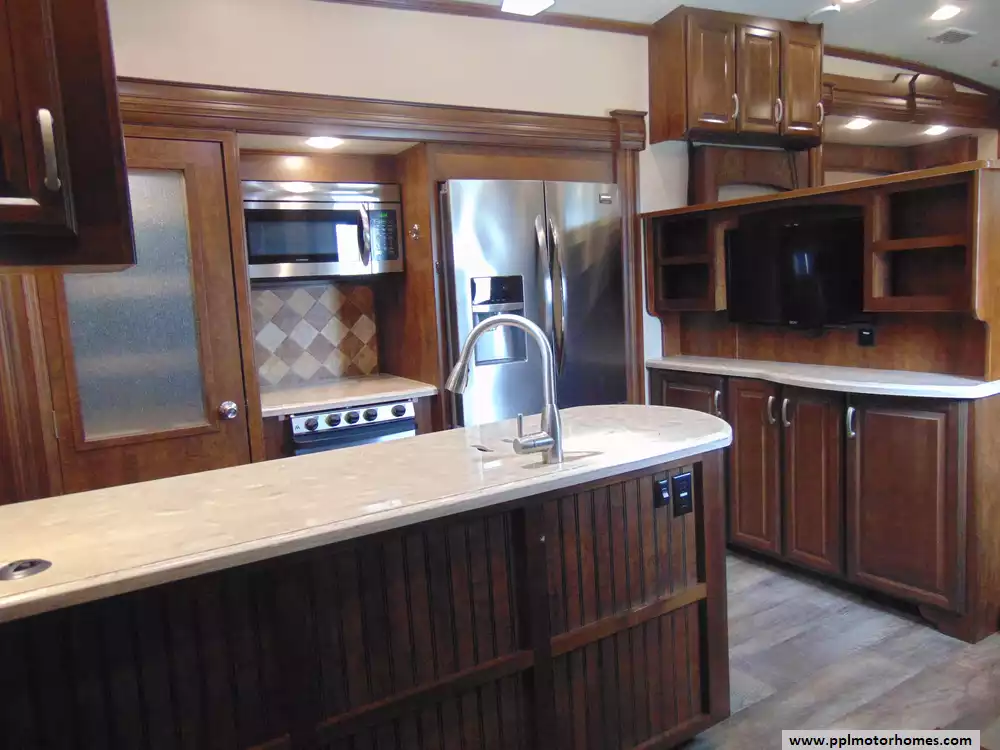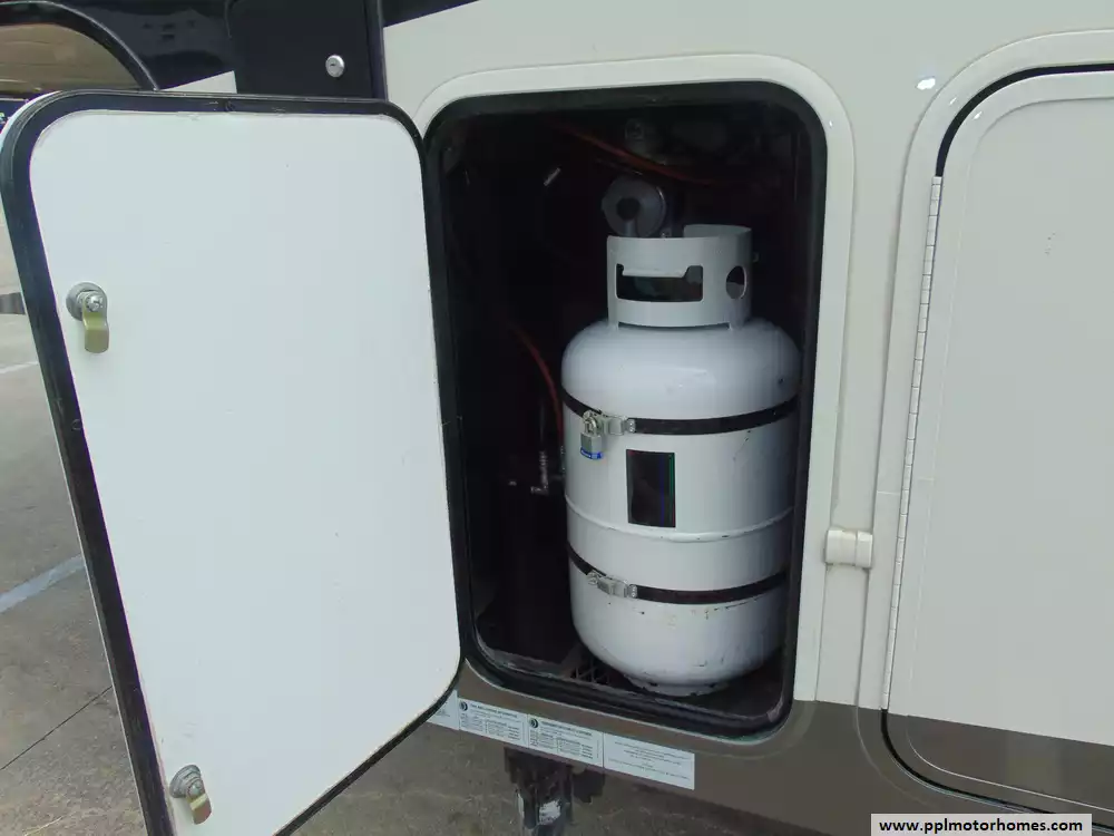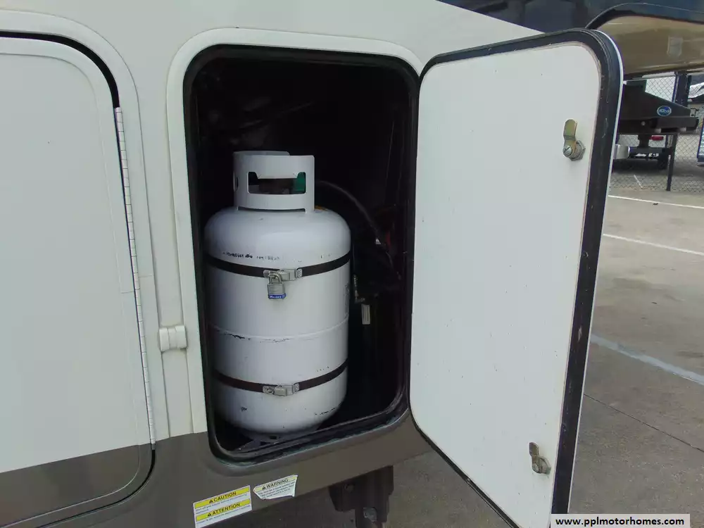 Specs: Length: 41.58 ft., Width: 8.33 ft., Height: 13.5 ft.,Interior Height: 8.75 ft.,Payload Capacity: 2,095 lbs.,Total Fresh Water Tank Capacity: 64 gal., Total Gray Water Tank Capacity: 80 gal., Total Black Water Tank Capacity: 40 gal., Total Number of Propane Tanks: 2, Total Propane Tank Capacity: 60 lbs.