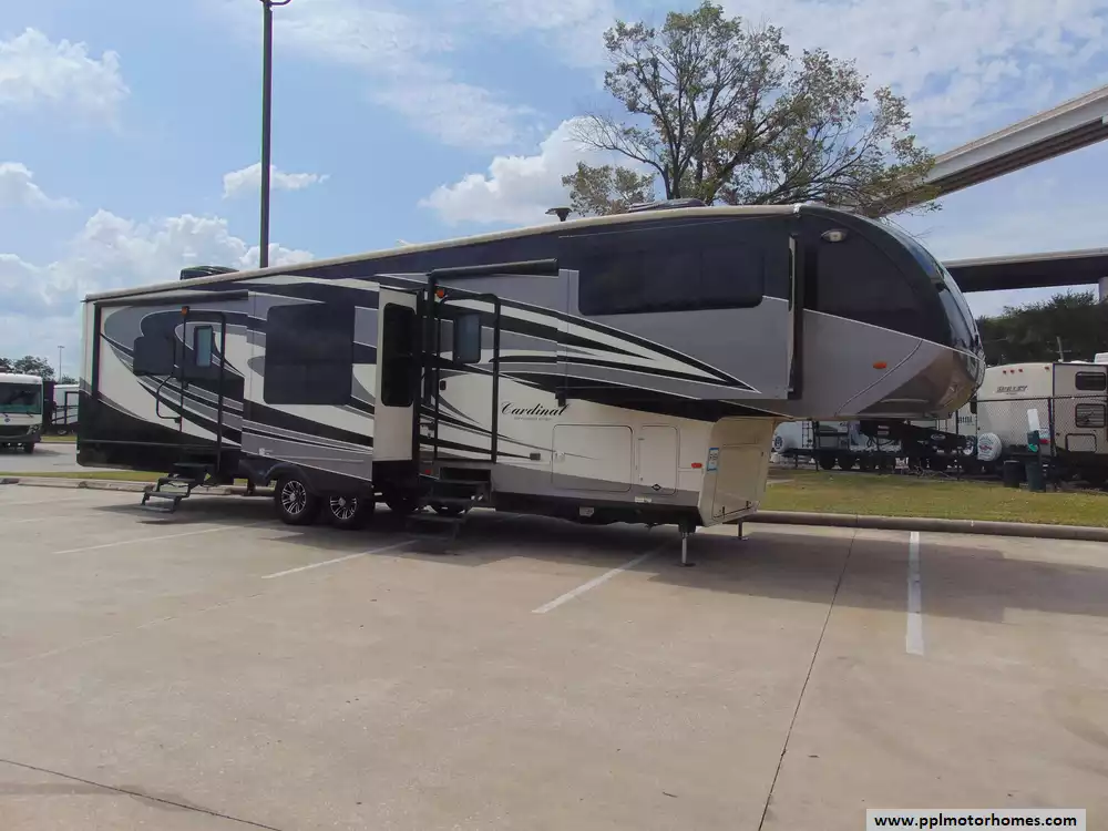 This 2016 Cardinal 3825FL is a luxurious fifth wheel designed for those who seek elegance and comfort while on the road.This model stands out with its spacious layout,high-end finishes,and thoughtful features,making it an ideal choice for extended stays or full-time RV living.Features Include...5 Slide-outs, 2 Ducted Air Conditioners, Residential Frigidaire Refrigerator, In-Fridge Ice Maker, Automatic Main Awning,Theatre Seating, Washer/Dryer, Dishwasher, Satellite Dish, Outside Speakers, 3 TVs, DVD Player, Outside Shower, Fireplace, Convection Microwave, 3 Burner Range,and Oven.With its blend of luxury,functionality,and high-end finishes,the Cardinal offers an exceptional RV living experience.