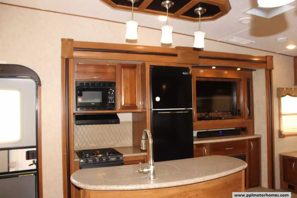 Specs: Length: 33.11 ft., Height: 12.5 ft., Payload Capacity: 2,427 lbs., Total Fresh Water Tank Capacity: 60 gal., Total Gray Water Tank Capacity: 70 gal., Total Black Water Tank Capacity: 35 gal., Number of Propane Tanks: 2, Total Propane Tank Capacity: 60 lbs.