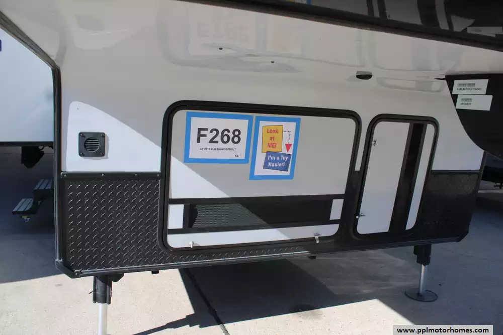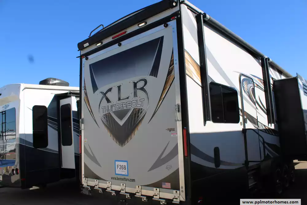 This 2016 XLR Thunderbolt 415AMP Is Needing New Adventures! Highlights Of This Toy Hauler Include....A Brand-New Roof, 6-Point One-Touch Hydraulic Leveling System, 3 Slide-Outs, Side-Mounted Solar Prep, Onan Gas Generator, 2 Roof-Ducted Air Conditioners And 1 Non-Ducted Roof Air Conditioner, Frameless Tinted Windows, Fuel Station, 4 Door Gas/110v Dometic Refrigerator, Automatic Main Awning And Door Awning, Washer/Dryer Connections, Heated Tanks, Outside Speakers, 2 TVs, DVD Player, Outside Shower, Fireplace, Microwave, Kitchen Island, 3 Burner Range, Oven, And More! Conquer Your Adventures In This Thunderbolt Toy Hauler! This Camper Is Eligible For Protection And PPL's Financing Options.