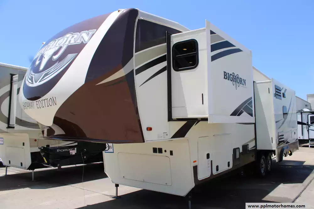 This 2016 Bighorn 3270RS Makes For A Great Getaway! Some Highlights Include....A Brand-New Roof, A 6-Point One-Touch Hydraulic Leveling System, 3 Slide-Outs, Maxxair Vent Covers, Rear Camera Prep, Frameless Tinted Windows, 2 Ducted Air Conditioners, 4 Door Gas/110v Norcold Refrigerator, Automatic Main Awning, Washer/Dryer Connections, Heated Tanks, Outside Speakers, TV, DVD Player, Outside Shower, Electric Power Cord Reel, Fireplace, Central Vacuum, Convection Microwave, Kitchen Island, 3 Burner Range, Oven, And More! Ask About PPL's Financing Options! This RV Is Not Fully Furnished. Please See Pictures For A More Accurate Representation.
