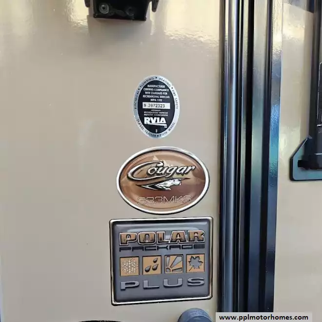 The 2016 Keystone Cougar 333MKS features a spacious and open floorplan with three slide-outs with remote control and a dedicated rear living area. The layout is designed for maximum comfort and long-term living. This is a one owner RV and has been well maintained and stored inside when not in use. The very rear of the RV features a new sofa, two rcliners and overhead cabinetry spanning the entire width of the unit. The main living area utilizes two opposing slide-outs to create a wide-open space. There is freestanding dinette with four chairs and handy closet is immediately to the right upon entering the main door. An off-center kitchen island holds a large double stainless steel sink with a high-rise pull-out faucet, maximizing counter space and usability. The main kitchen contains appliances and entertainment center. This includes a large pantry, a three-burner range/oven, residential Frigidair refrigerator, and an entertainment center with a TV, speakers with sub woofer and an electric fireplace. The owner has added high quality pull out drawers in several of the cabinets. Additional storage can be round below the step and chair cushions. Steps near the main entry lead up to a side-aisle bathroom and front bedroom. The bathroom has dual entry doors (one from the hallway, one from the master bedroom). It includes a large, one-piece molded fiberglass shower with a skylight and Fantastic Fan, a bidet toilet, a vanity with a sink, and a medicine cabinet. The private front bedroom features a queen-sized Sleep Number bed located in its own slide-out on the off-door side, with nightstands on either side. Opposite the bed is a chest of drawers. Along the front wall is a large, full-height wardrobe closet with sliding doors, which also contains a corner section prepped for a washer/dryer unit. A second non-ducted air conditioner has been added to the master bedroom for added comfort when sleeping.