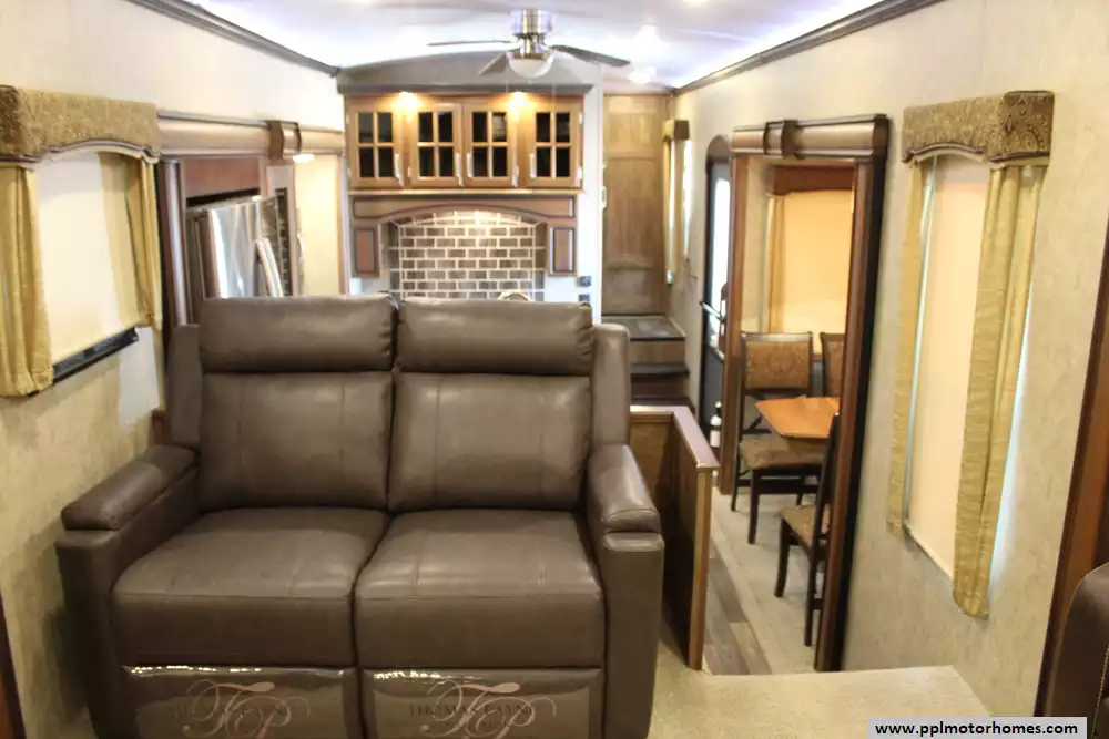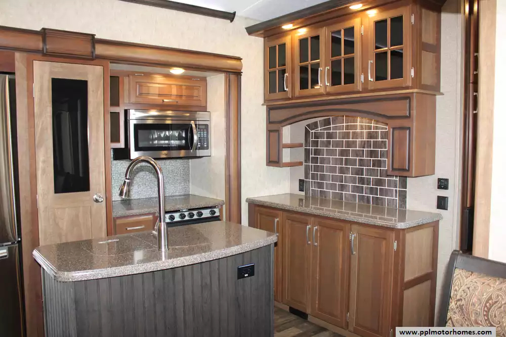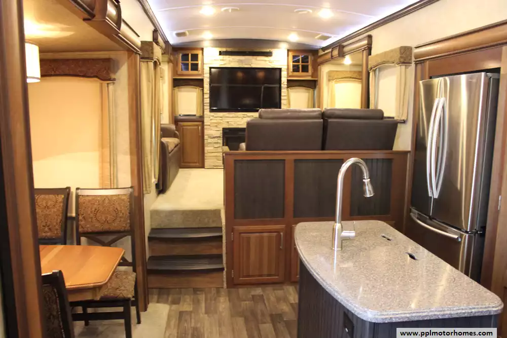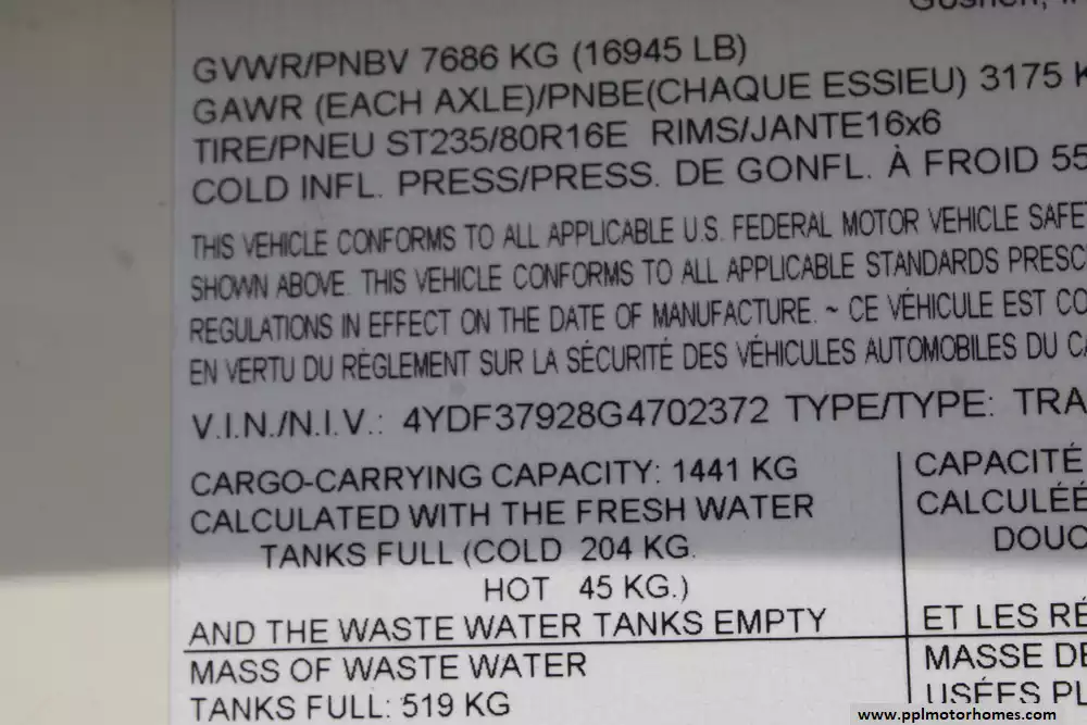 Specs: Length: 41.5 ft., Width: 8 ft., Height: 13.42 ft., Payload Capacity: 3,735 lbs., Total Fresh Water Tank Capacity: 66 gal., Total Gray Water Tank Capacity: 93 gal., Total Black Water Tank Capacity: 50 gal., Number of Propane Tanks: 2, Total Propane Tank Capacity: 60 lbs.