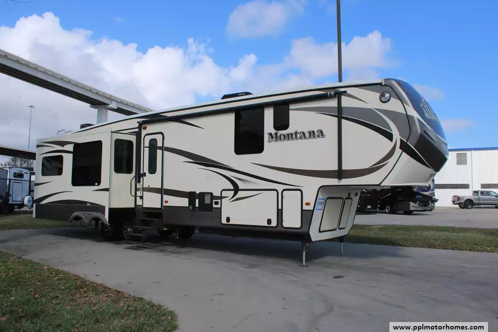 This 2016 Montana Luxury 3910FB is designed for comfortable extended travel, full-time living, or upscale weekend camping. Features Include...3 Slide-outs, Onan Propane Generator, 2 Ducted Air Conditioners, Double Door 110v/12v Residential Refrigerator, In-Fridge Ice Maker, Automatic Main Awning, Washer/Dryer, Outside Entertainment System, Outside Shower, Central Vacuum, Convection Microwave, and 3 Burner Range.