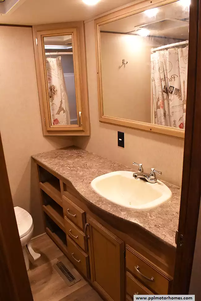 (Floor plan is NOT drawn to scale. Length of vehicle is approximate. Buyer is responsible for verifying actual length. PPL Motor Homes compiled this list of features, specifications, equipment and options as a guide. No representation or warranties, either express or implied, are made as to the accuracy of the information herein. Please verify for yourself all items listed before purchase.)