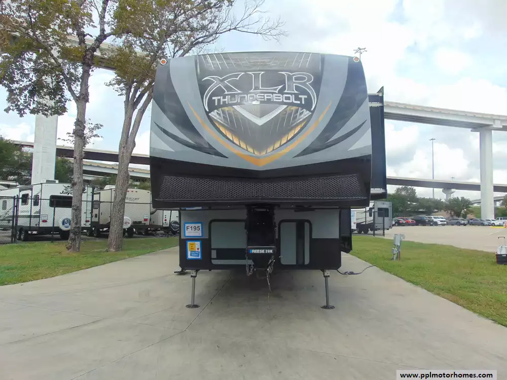 The 2017 Forest River XLR Thunderbolt 341AMP is a luxury toy hauler designed for adventurers who want to bring their toys (like ATVs, motorcycles, or dirt bikes) along for the ride without sacrificing comfort and high-end amenities. Features Include...2 Slide-outs, Onan Gas Generator, 2 Ducted Air Conditioners, 4 Door Gas/110v Dometic Refrigerator, In-Fridge Ice Maker, Automatic Main Awning, Washer/Dryer Connections, Outside Speakers, TV, Outside Shower, Fireplace, Convection Microwave, 3 Burner Range, and Oven. Whether you're hitting the trails or relaxing by the campfire, the XLR Thunderbolt 341AMP delivers a premium experience on the road.