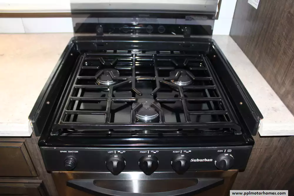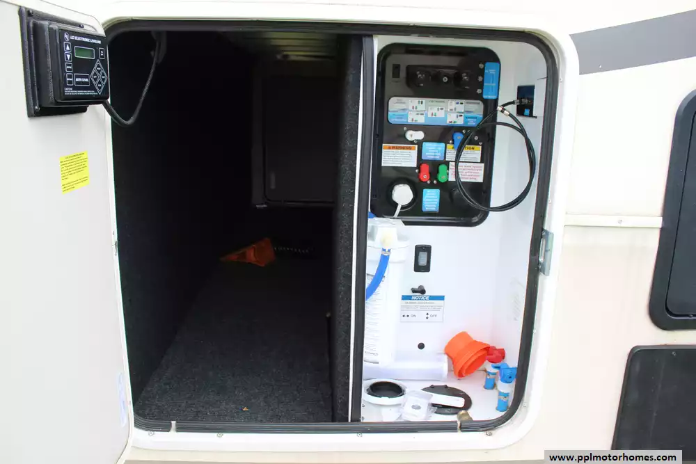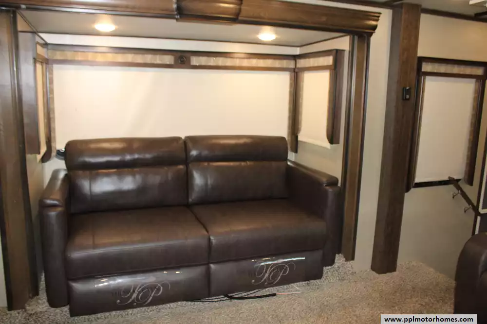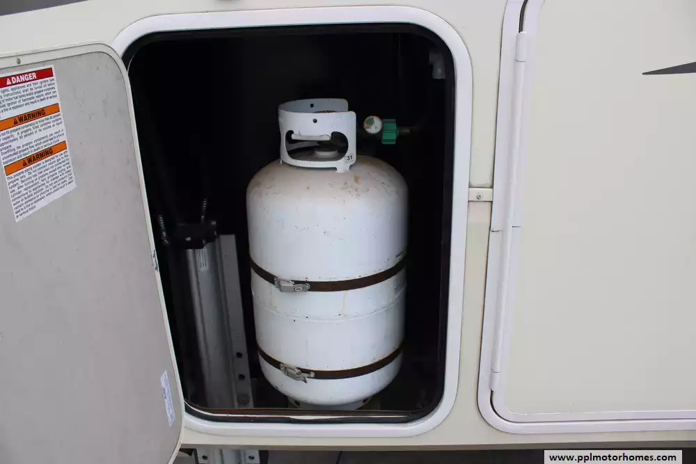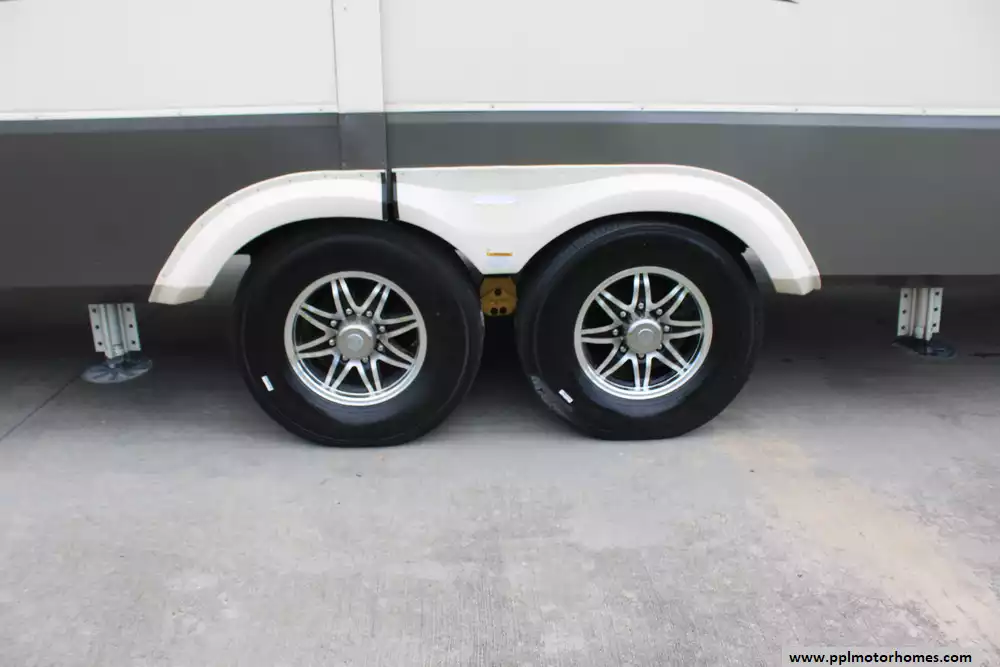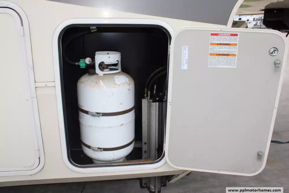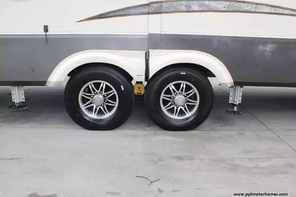 Specs: Length: 42.5 ft., Width: 8.42 ft., Height: 13.42 ft., Total Fresh Water Tank Capacity: 54 gal., Total Gray Water Tank Capacity: 100 gal., Total Black Water Tank Capacity: 50 gal., Number of Propane Tanks: 2, Total Propane Tank Capacity: 60 lbs.