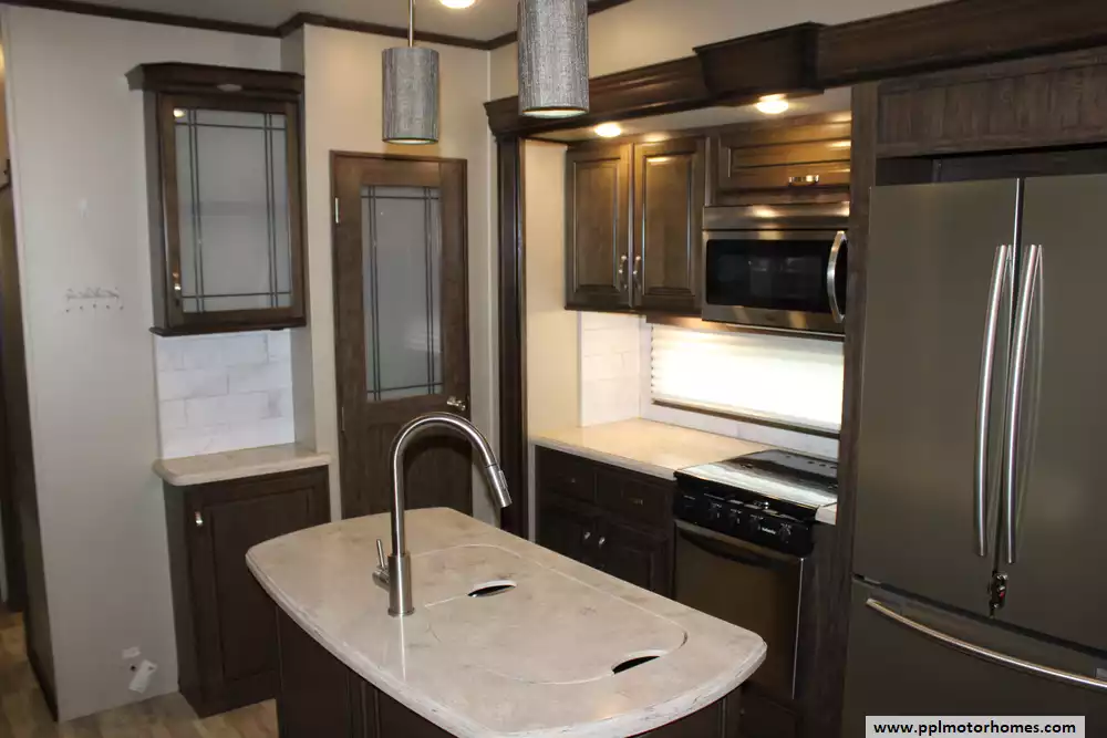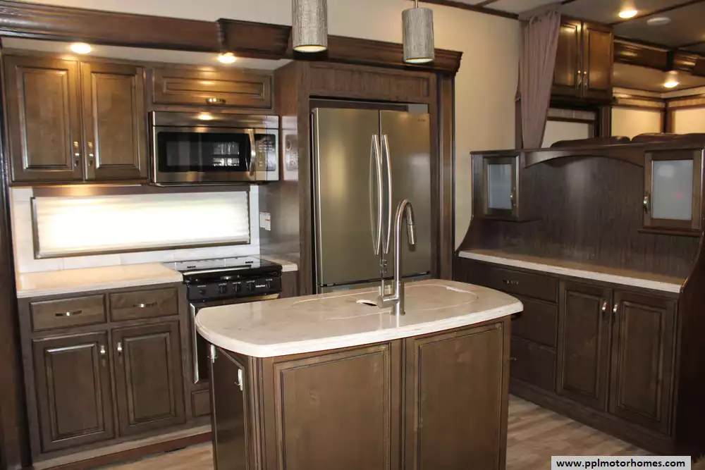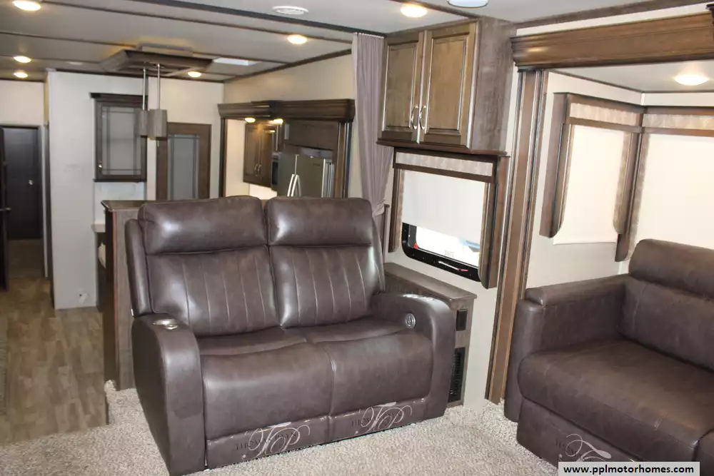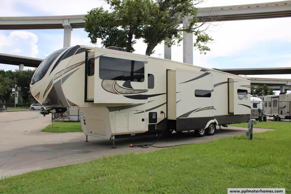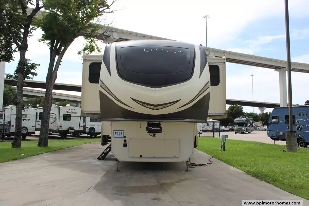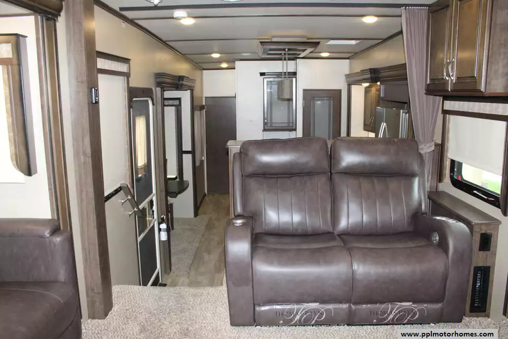 This 2017 Solitude 379FLS is a spacious, high-end fifth-wheel built for comfort and long-term living. Features Include...Hydraulic Landing Gear, 5 Slide-outs, 2 Ducted Air Conditioners, 110v Residential Samsung Refrigerator, In-Fridge Ice Maker, Automatic Main Awning, Washer/Dryer Connections, Outside Speakers, 2 TVs, Outside Shower, Fireplace, Convection Microwave, 3 Burner Range, and Oven. The 2017 Solitude 379FLS stands out as one of the most comfortable, full-featured fifth-wheels in its class. Upgrades : New batteries, New tempur pedic mattress, New sofa's, Road Armor Sprayed on Roof/Slide tops.